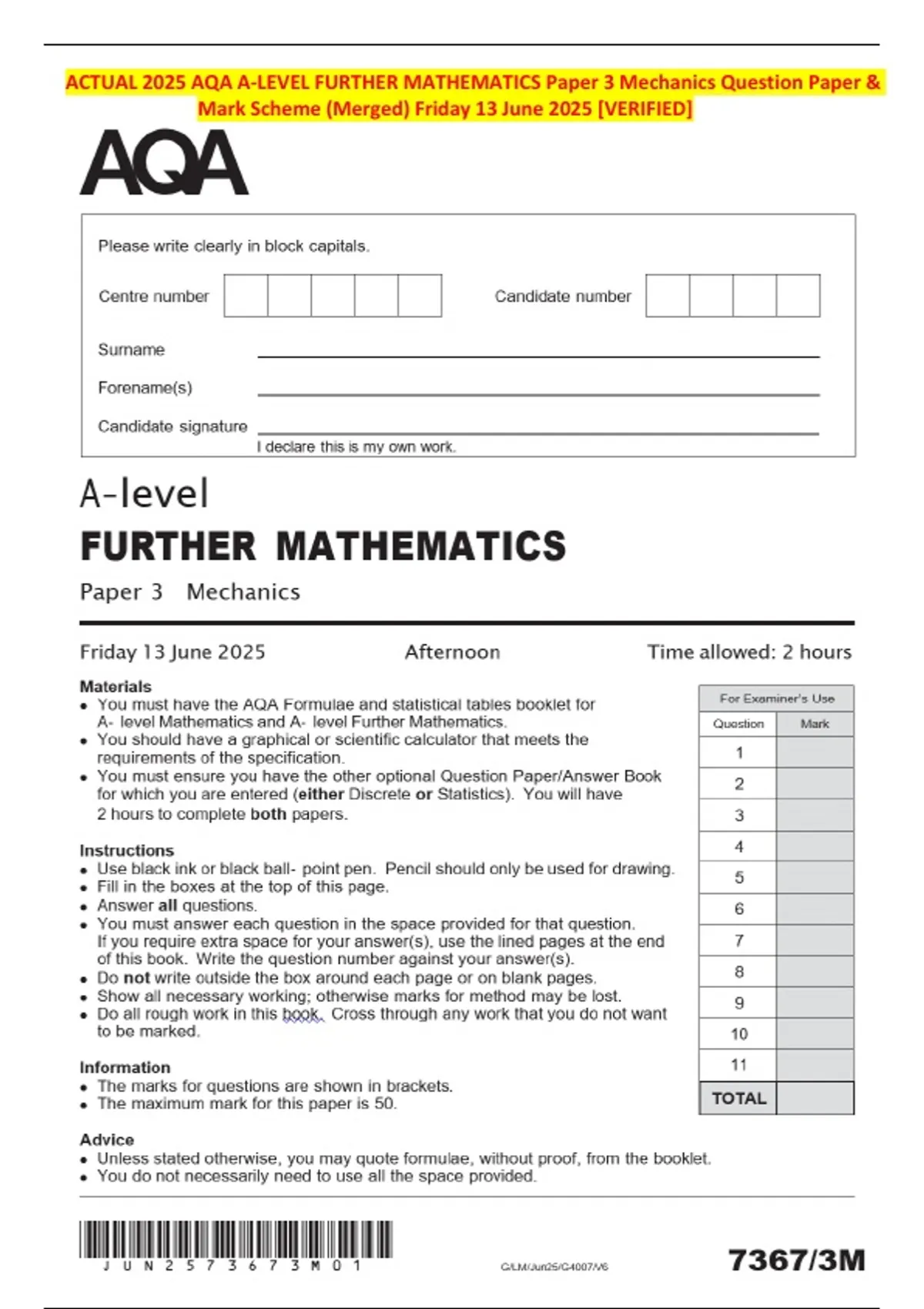 Mark Scheme (Merged) Friday 13 June 2025 [VERIFIED]