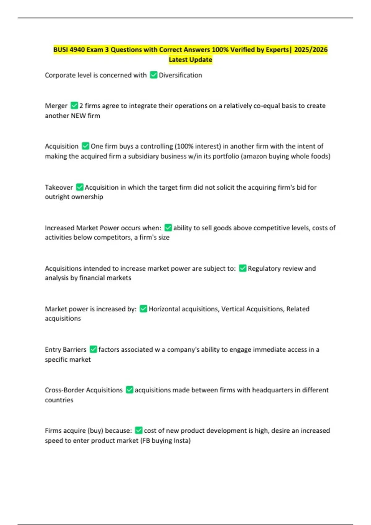 BUSI 4940 Exam 3 Questions with Correct Answers 100% Verified by Experts| 2025/2026