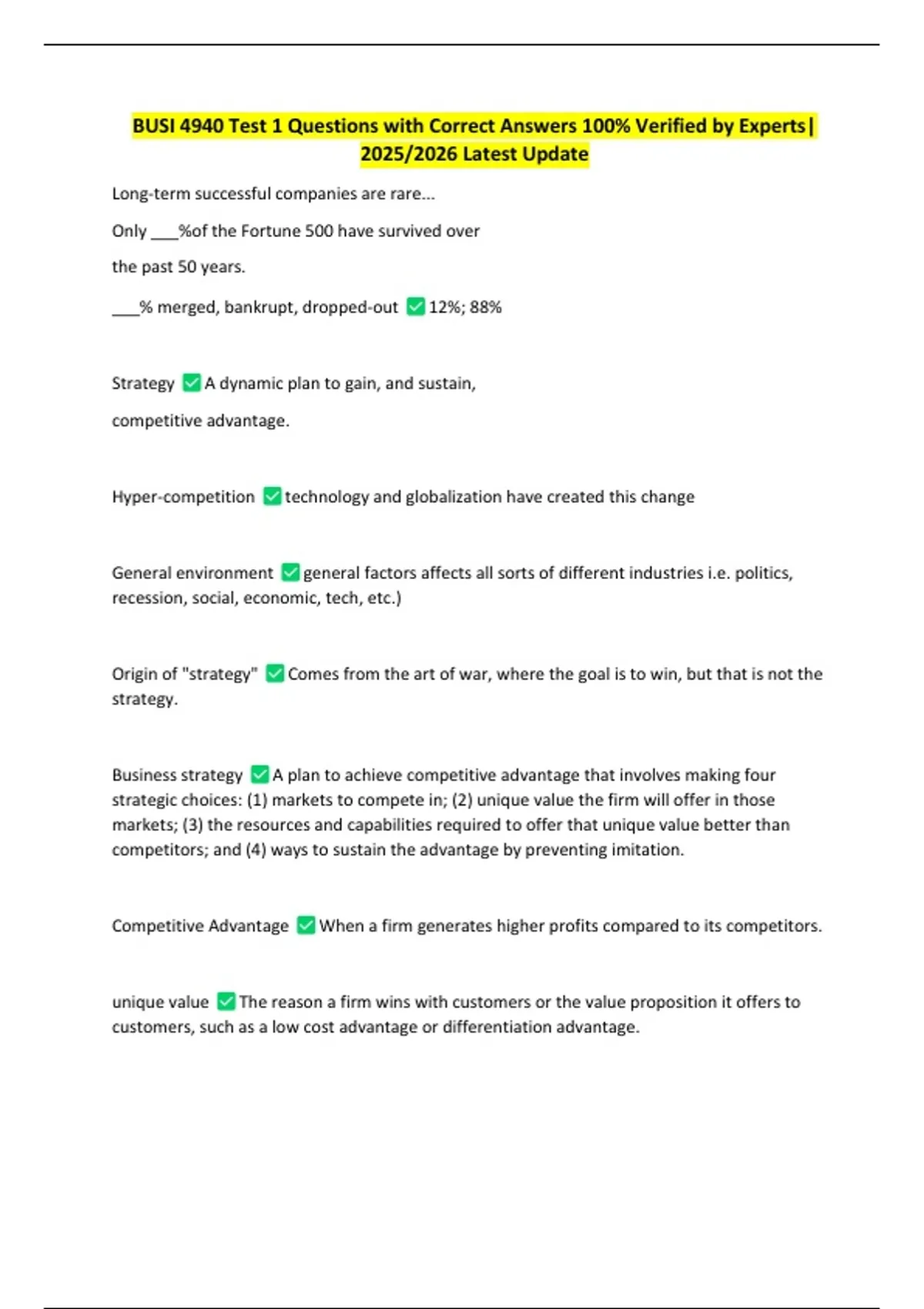 BUSI 4940 Test 1 Questions with Correct Answers 100% Verified by Experts|