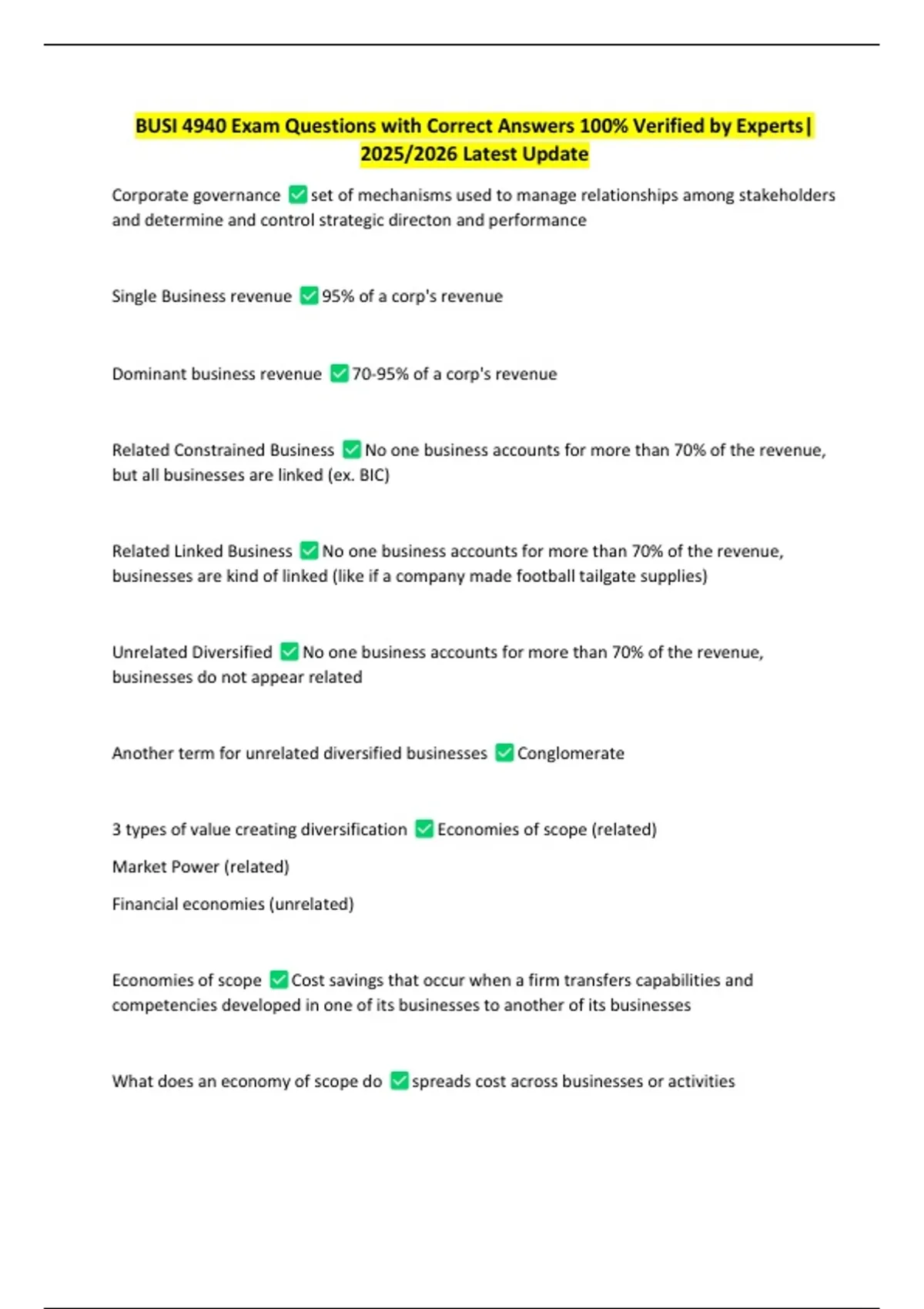 BUSI 4940 Exam Questions with Correct Answers 100% Verified by Experts|