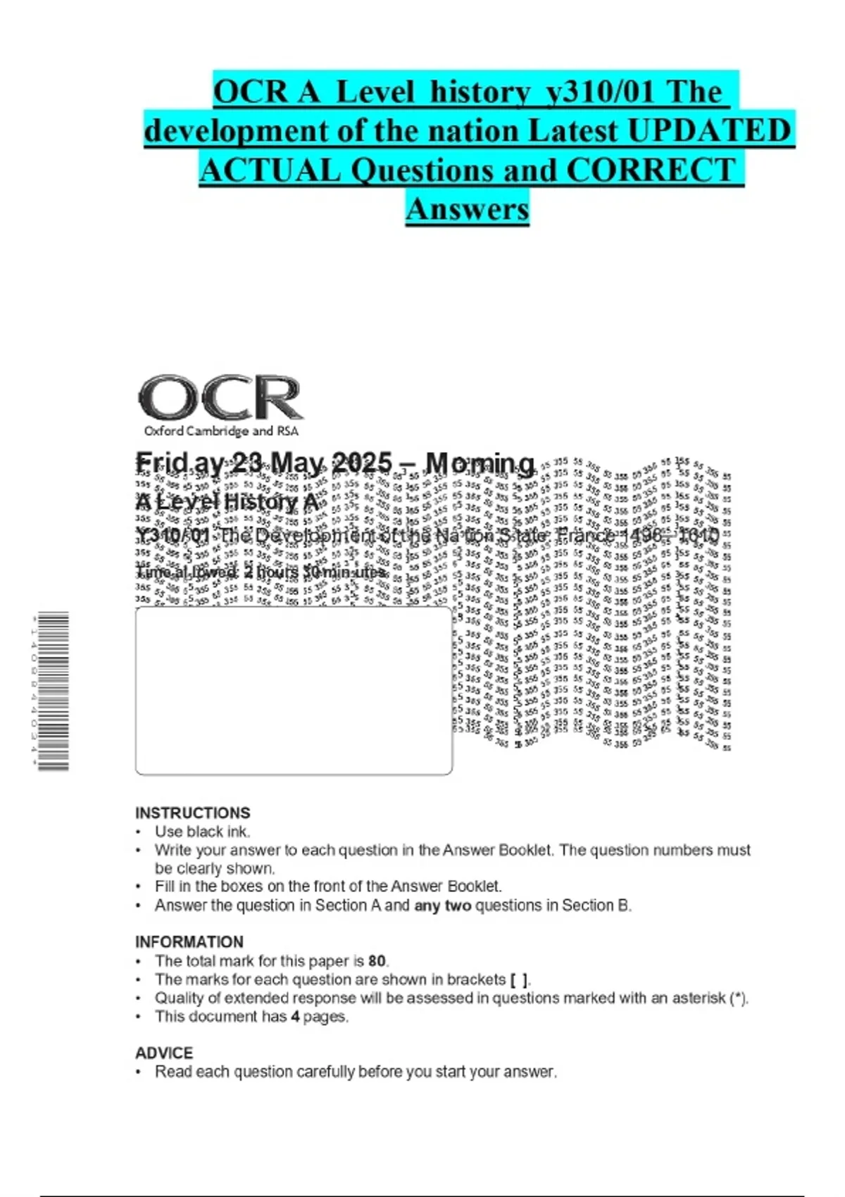 OCR A Level history y310/01 The development of the nation Latest UPDATED ACTUAL Questions and CORRECT Answers