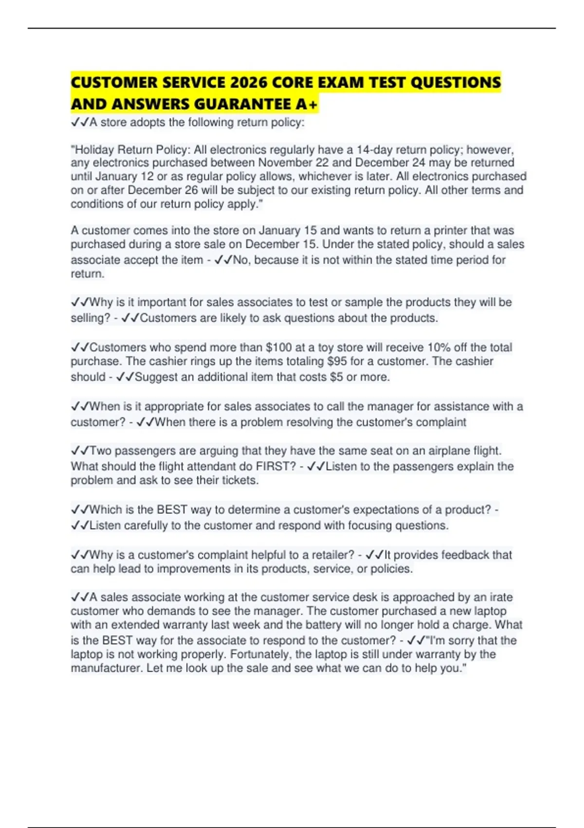 AND ANSWERS GUARANTEE A+