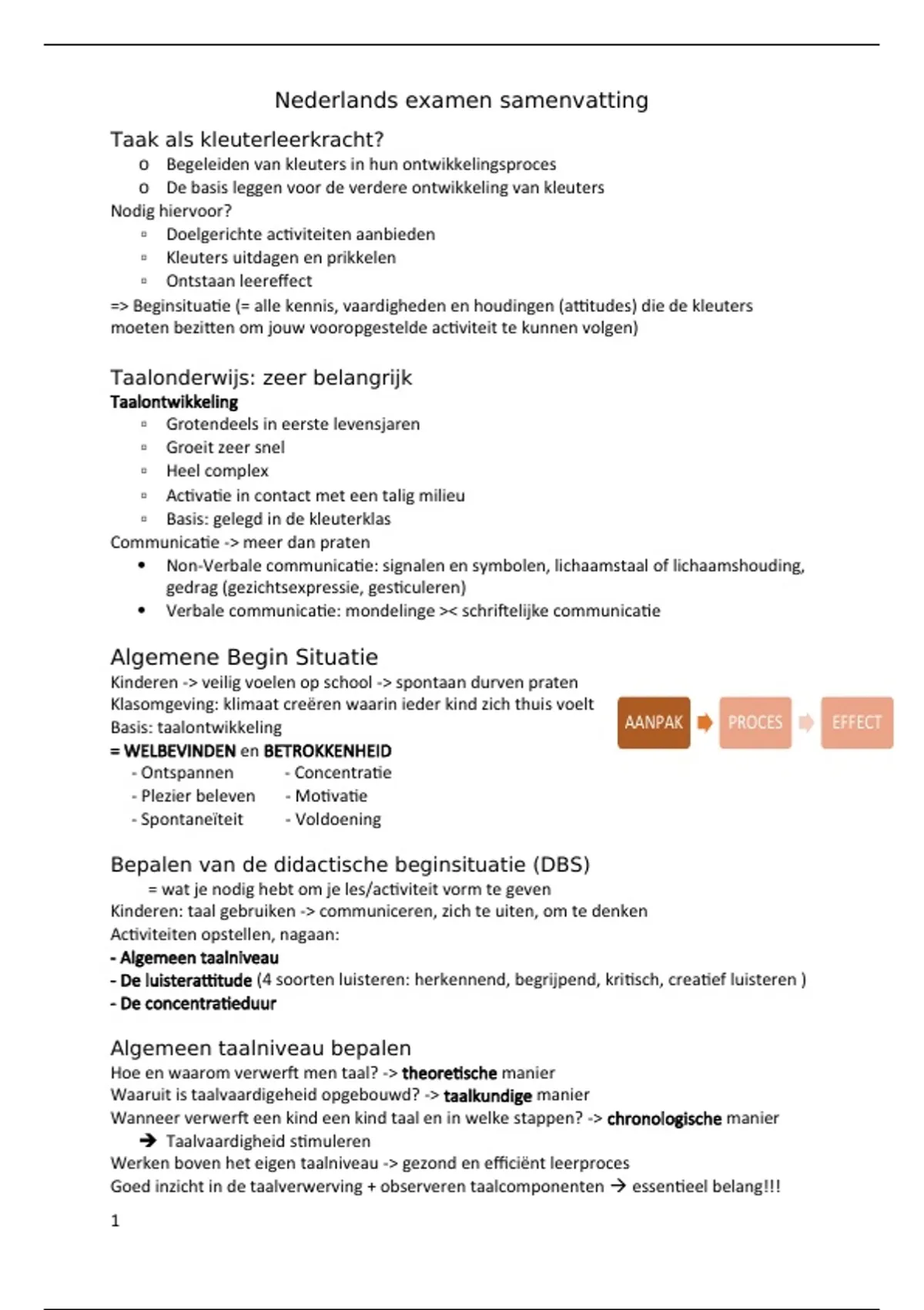 Basis: taalontwikkeling AANPAK PROCES EFFECT