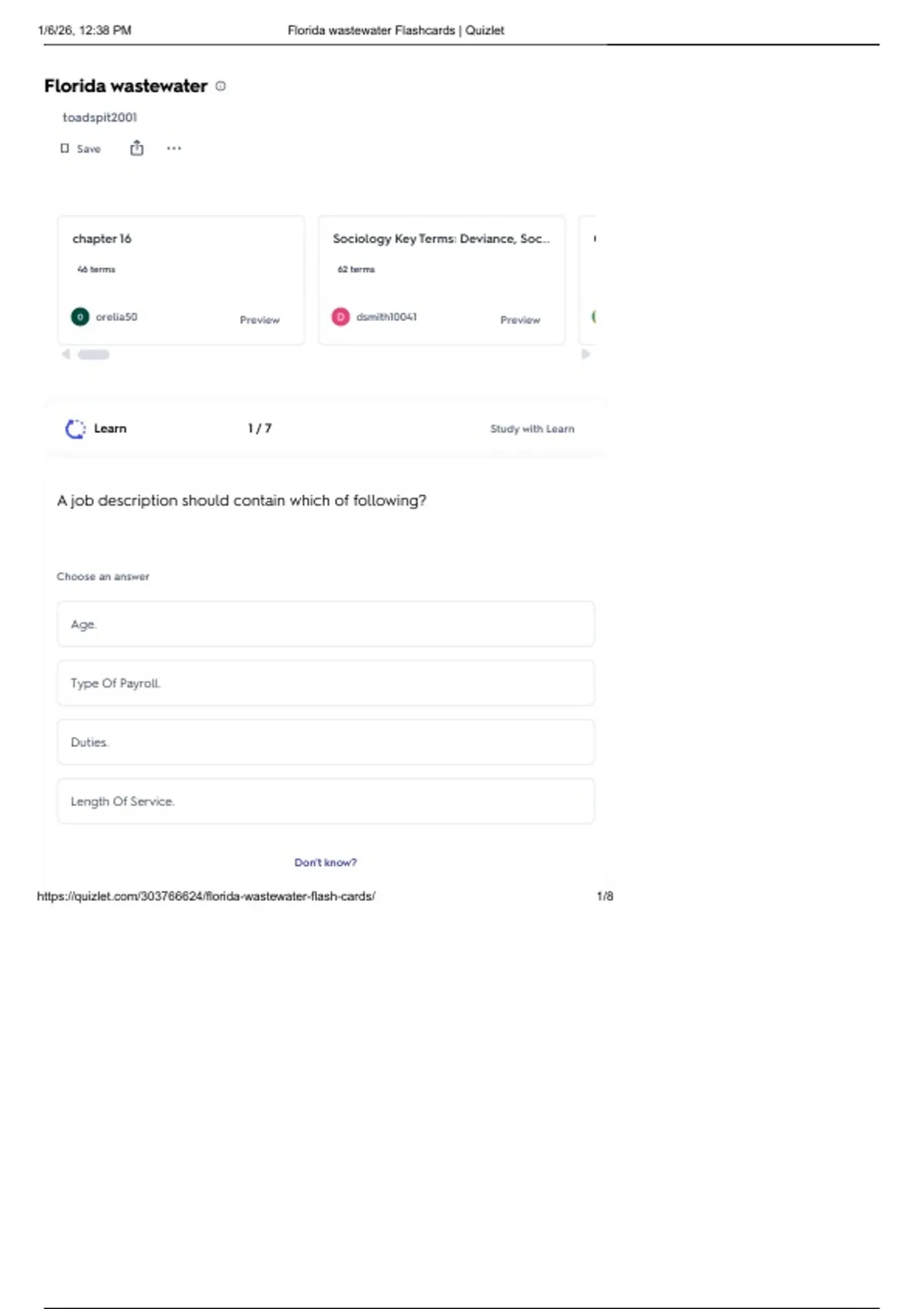 , 1/6/26, 12:38 PM Florida wastewater Flashcards | Quizlet