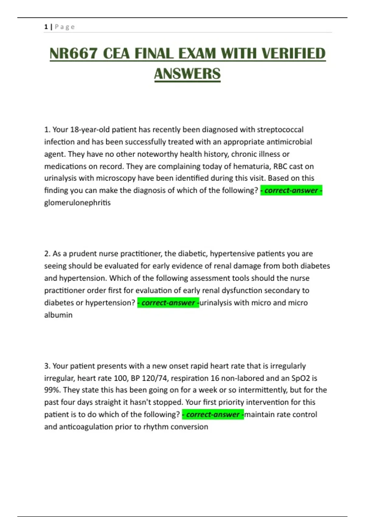 NR667 CEA FINAL EXAM WITH VERIFIED