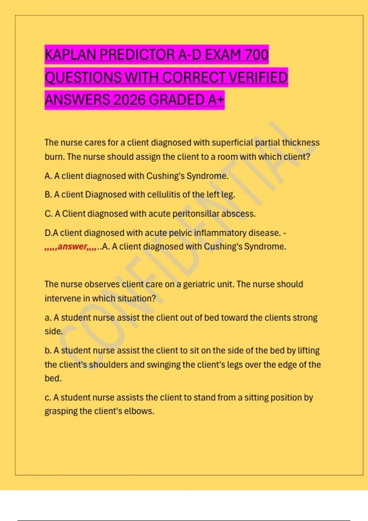 KAPLAN PREDICTOR A-D EXAM 700 QUESTIONS WITH CORRECT VERIFIED ANSWERS 2026 GRADED A+