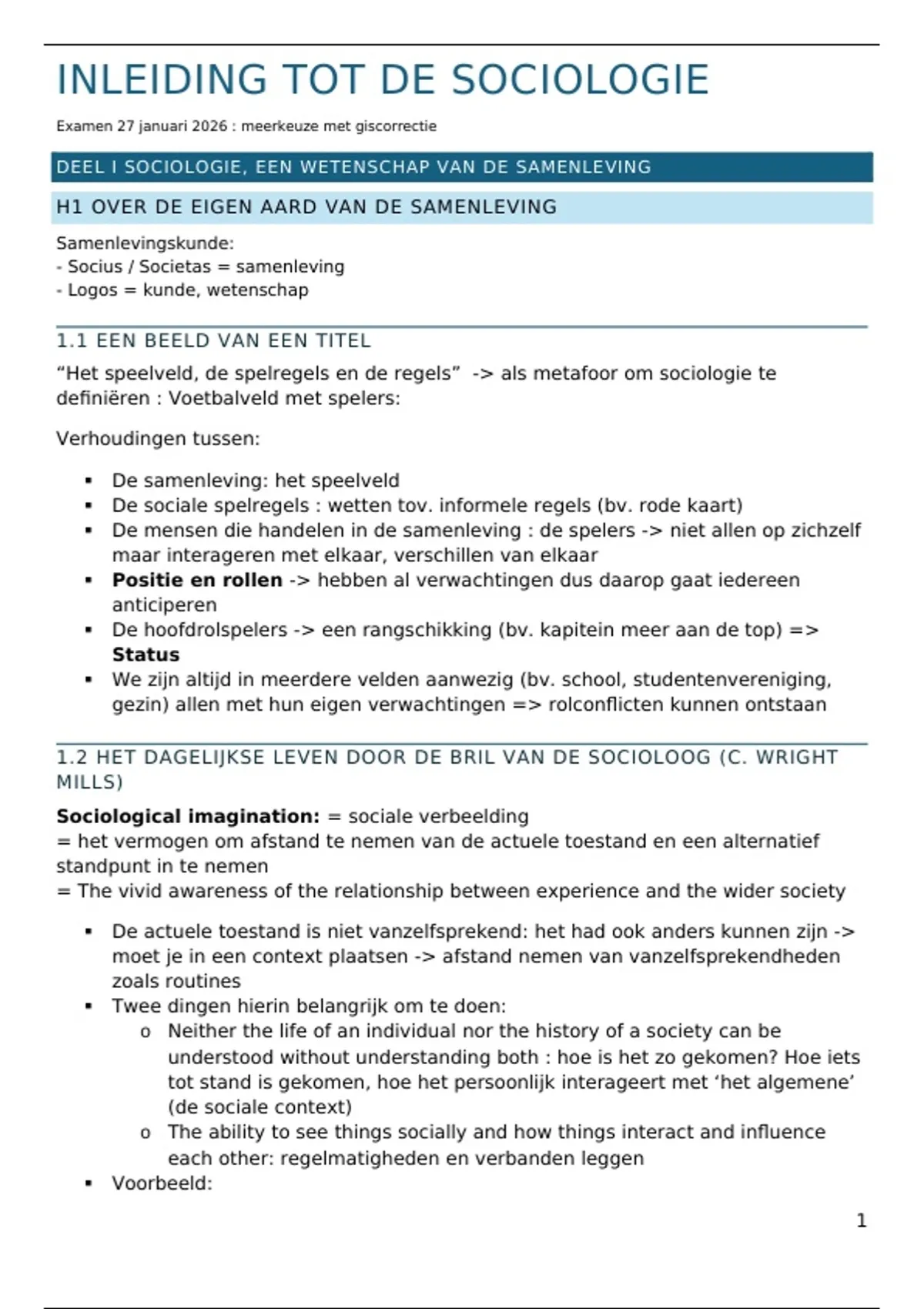 DEEL I SOCIOLOGIE, EEN WETENSCHAP VAN DE SAMENLEVING