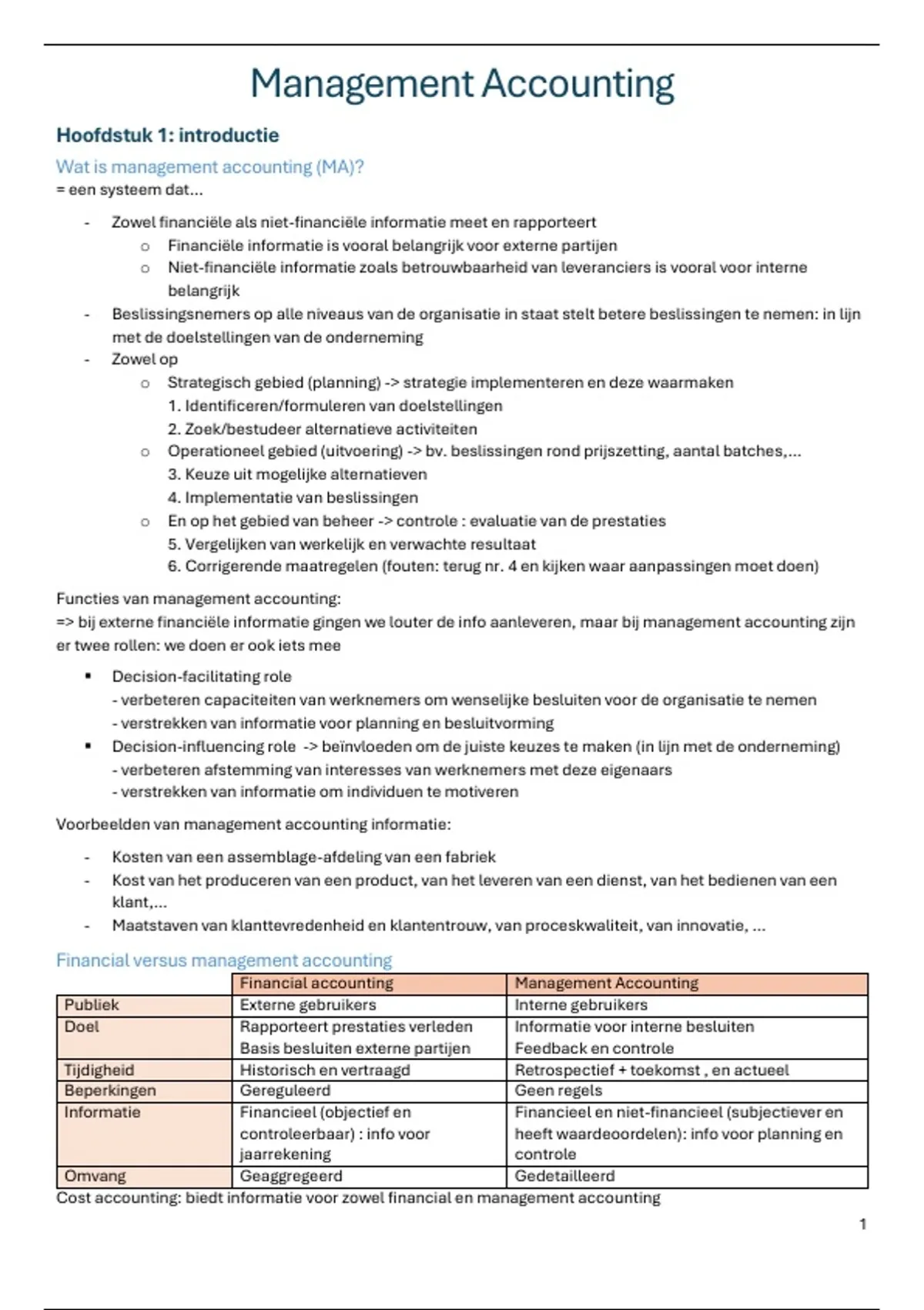 Cost accounting: biedt informatie voor zowel financial en management accounting