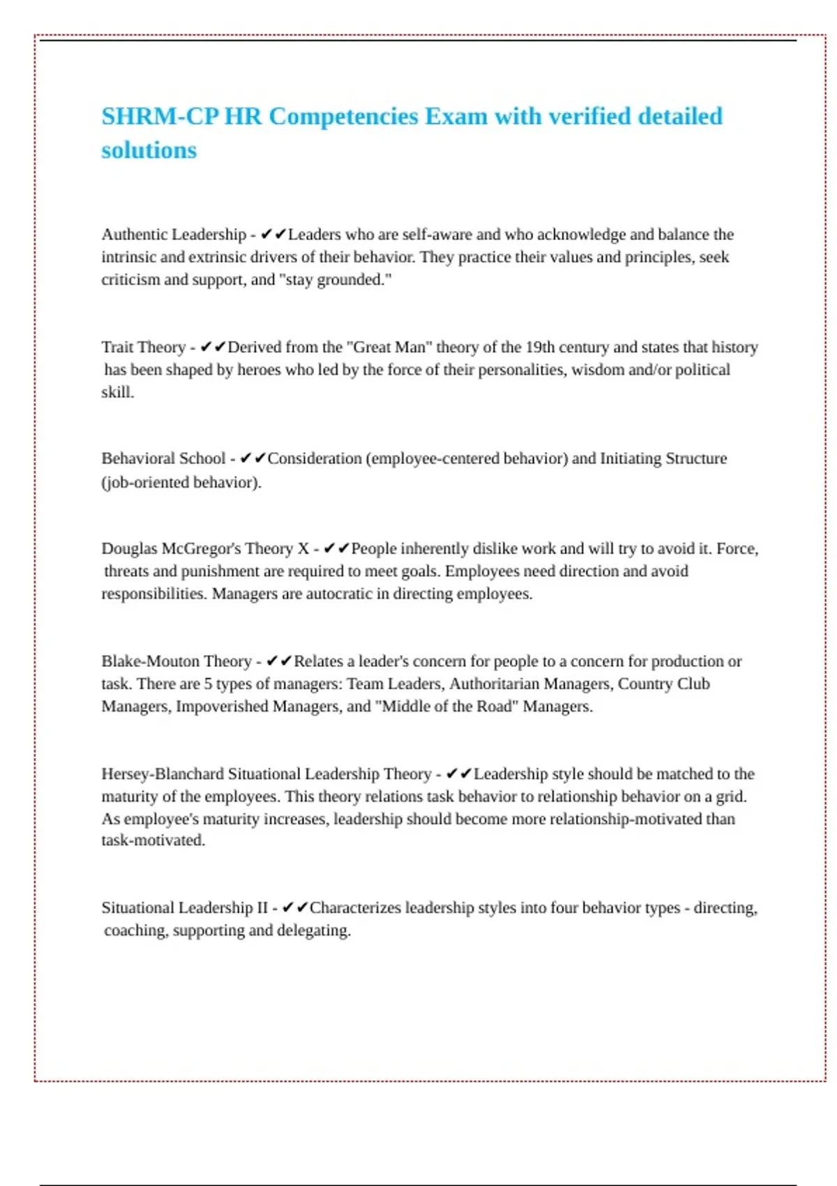 SHRM-CP HR Competencies Exam with verified detailed