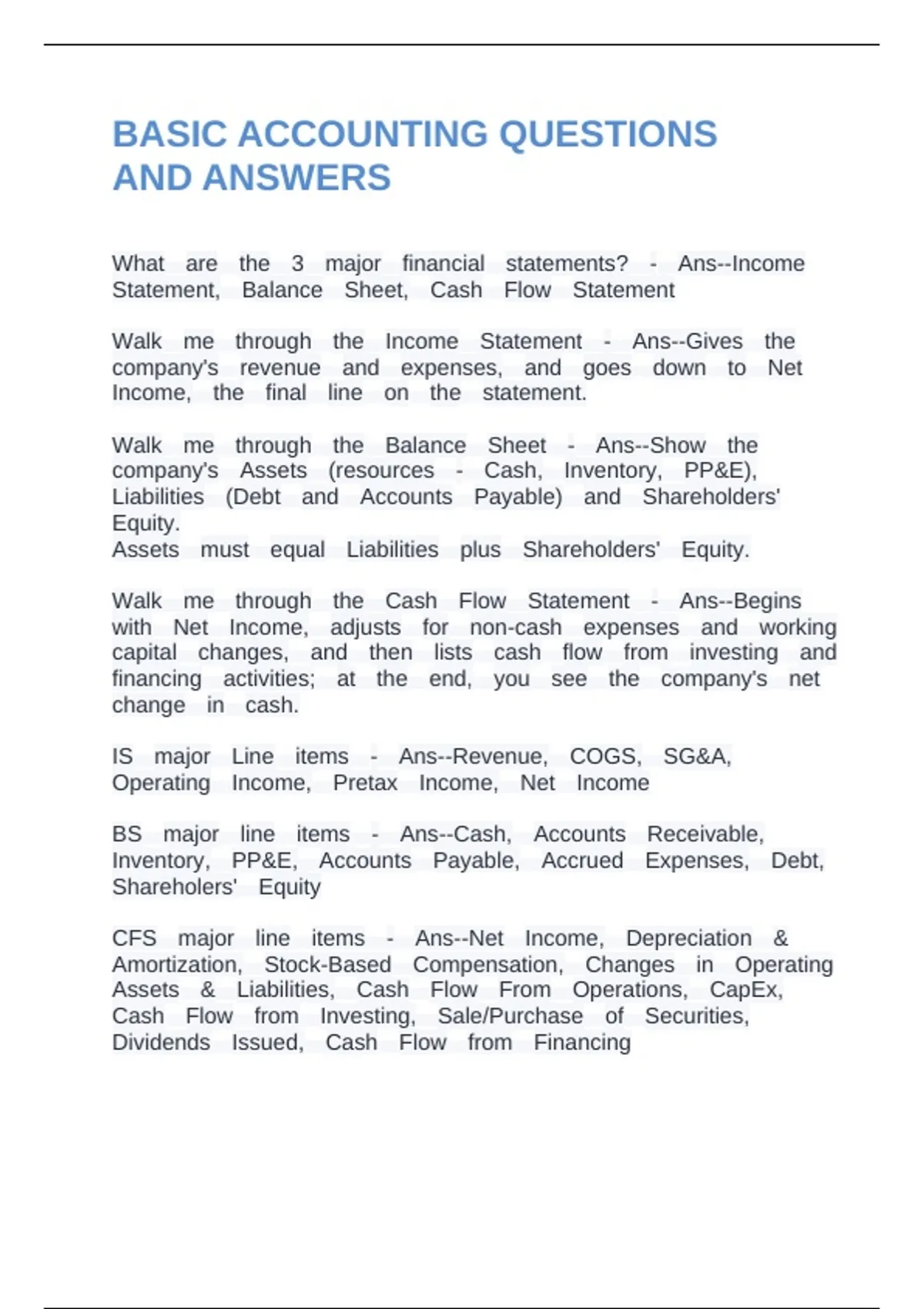 Walk me through the Balance Sheet - Ans--Show the