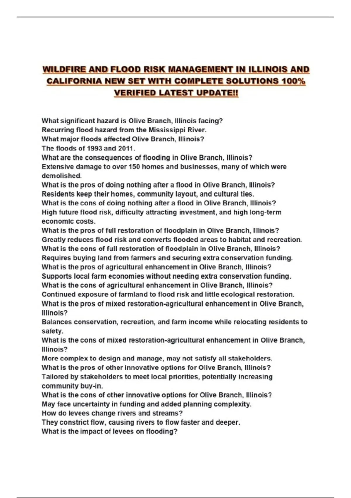 WILDFIRE AND FLOOD RISK MANAGEMENT IN ILLINOIS AND CALIFORNIA NEW SET WITH COMPLETE SOLUTIONS 100% VERIFIED LATEST UPDATE!!...