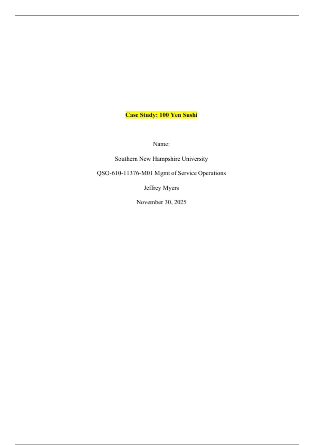 Case Study: 100 Yen Sushi _ QSO--M01 Mgmt of Service Operations | Answered correctly Latest 2026 updated.