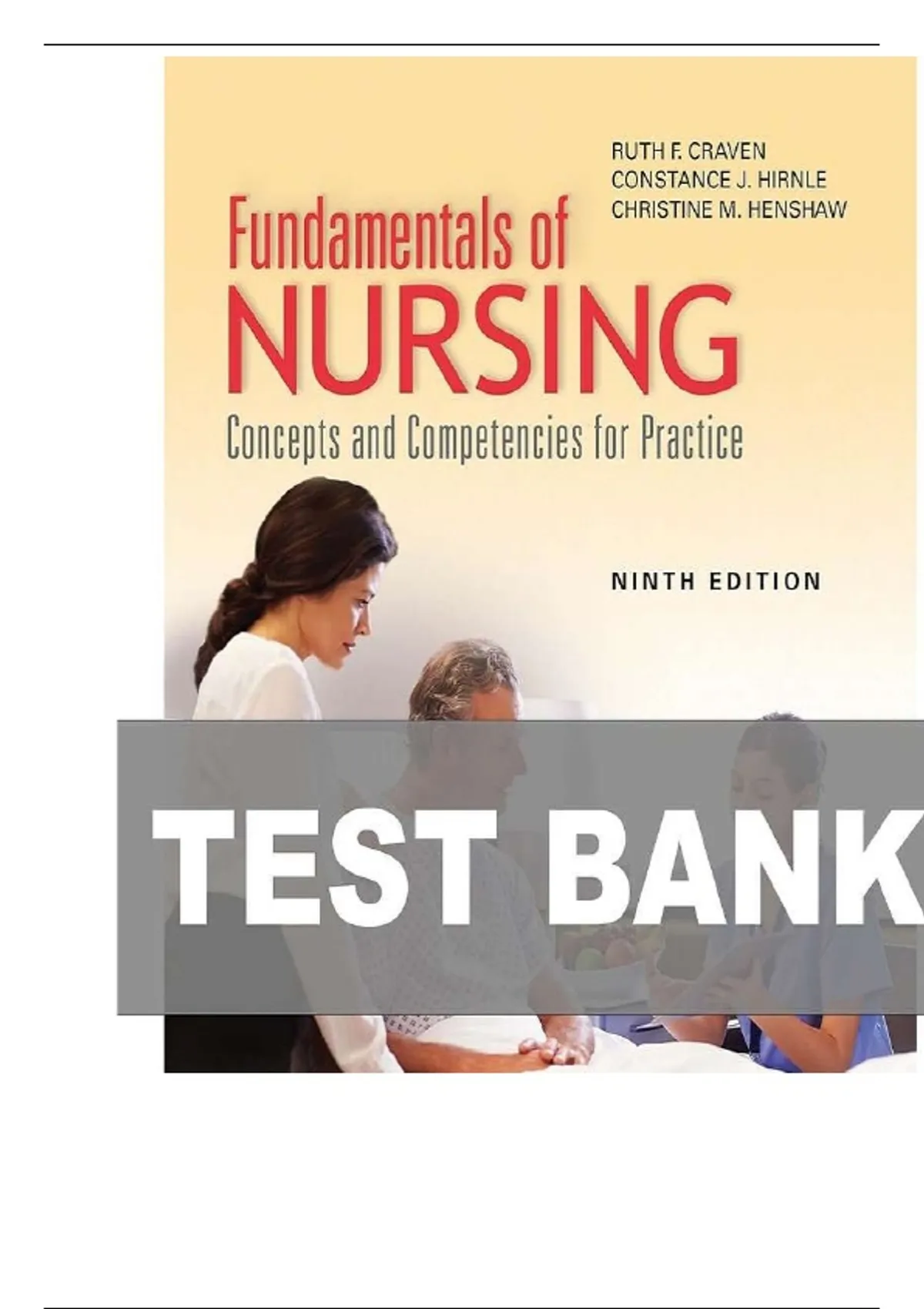 TEST BANK FOR Fundamentals of Nursing: Concepts and Competencies for Practice 9th Edition by Ruth F Craven, Constance Hirnle, Christine Henshaw ISBN: 9781975120429 COMPLETE GUIDE 100 % VERIFIED A+ GRADE ASSURED !!!!! LATEST UPDATE !!!!