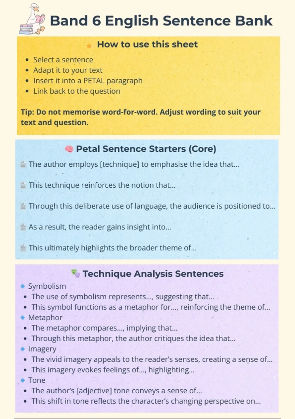 Tip: Do not memorise word-for-word. Adjust wording to suit your