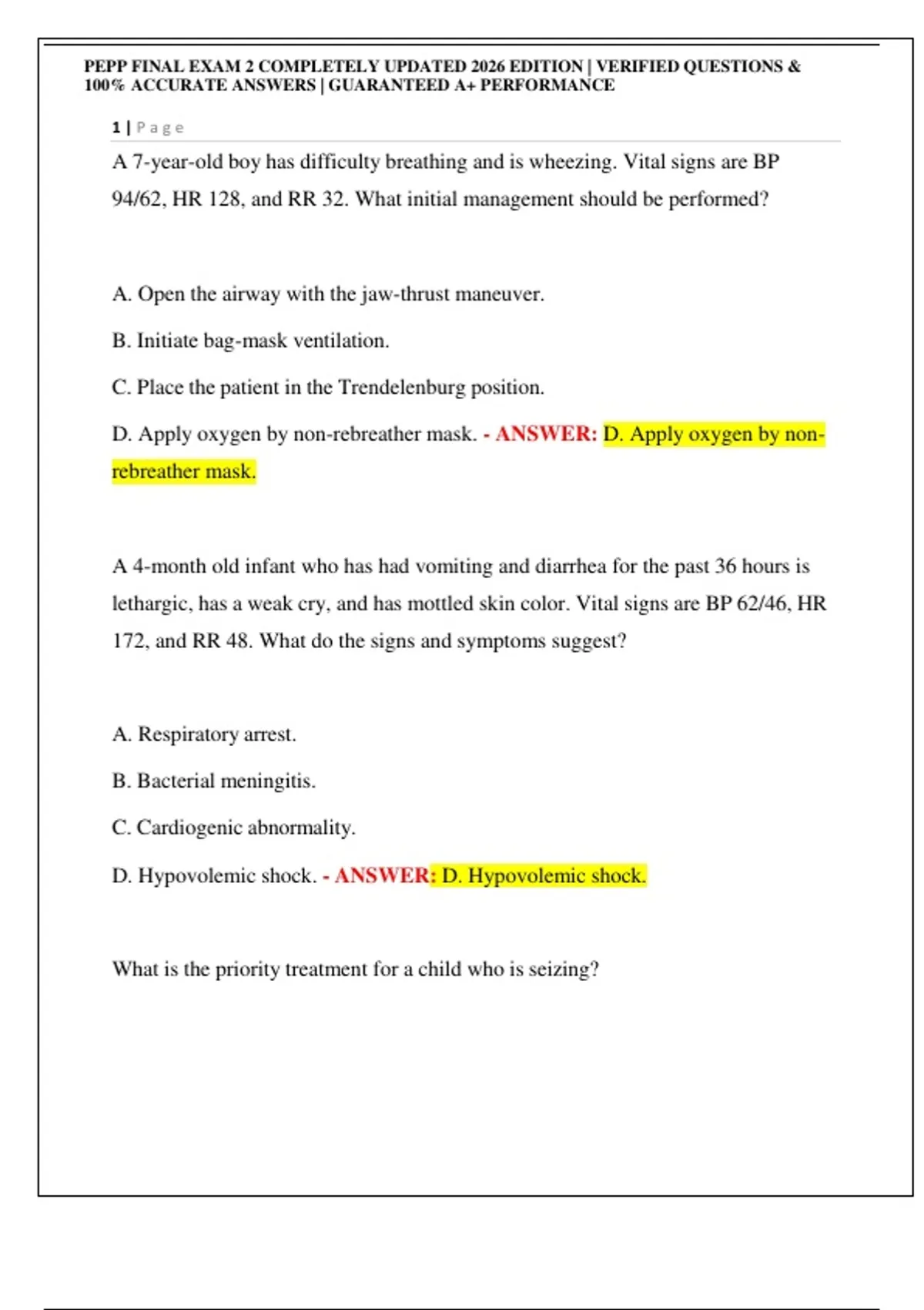 , PEPP FINAL EXAM 2 COMPLETELY UPDATED 2026 EDITION | VERIFIED QUESTIONS &