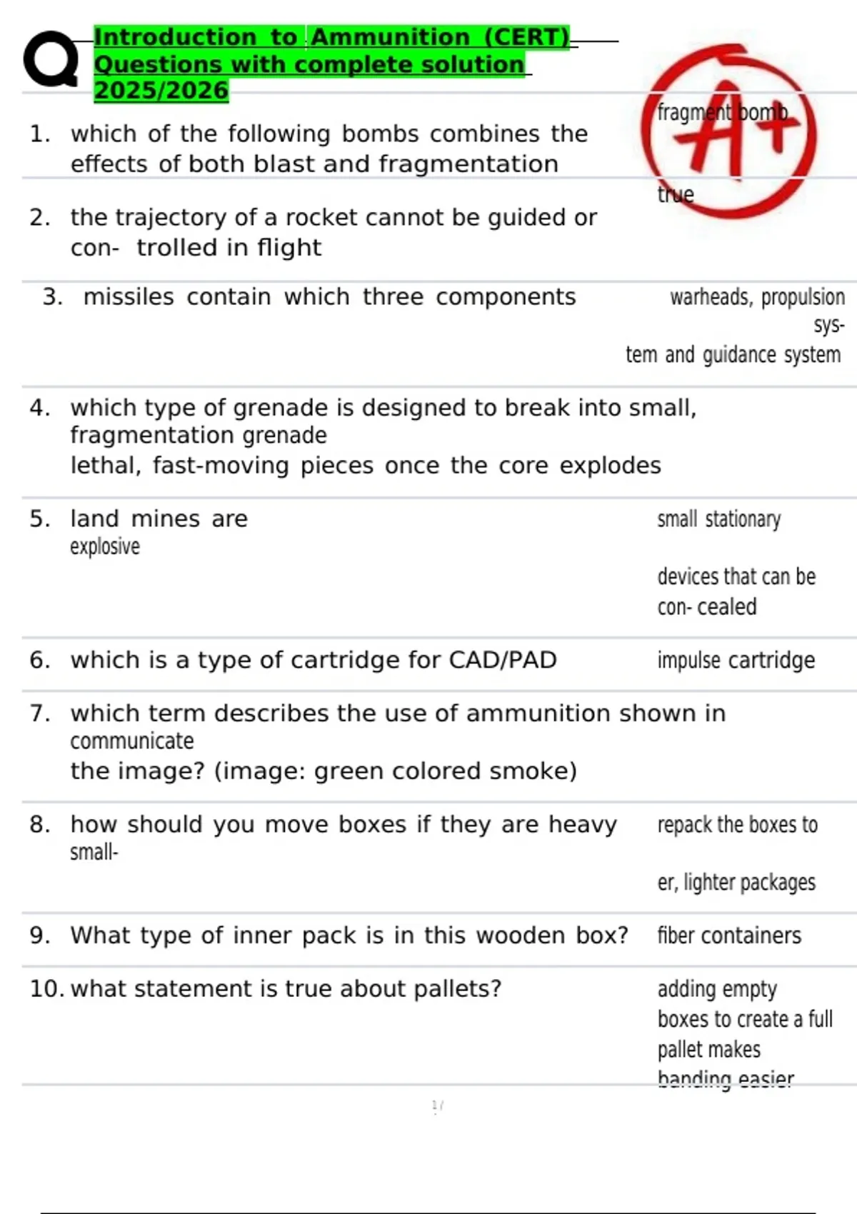 Introduction to Ammunition (CERT) Questions with complete solution 2025/2026