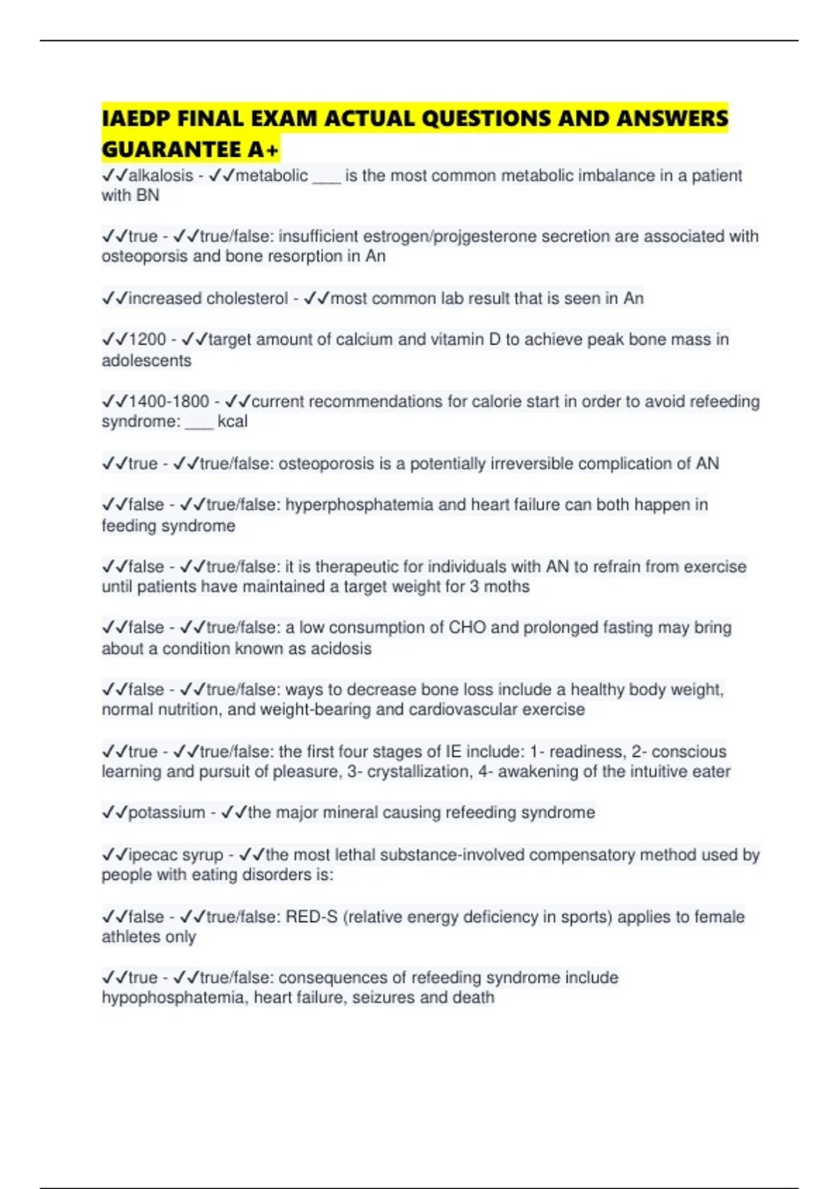 ✔✔false - ✔✔true/false: it is therapeutic for individuals with AN to refrain from exercise
