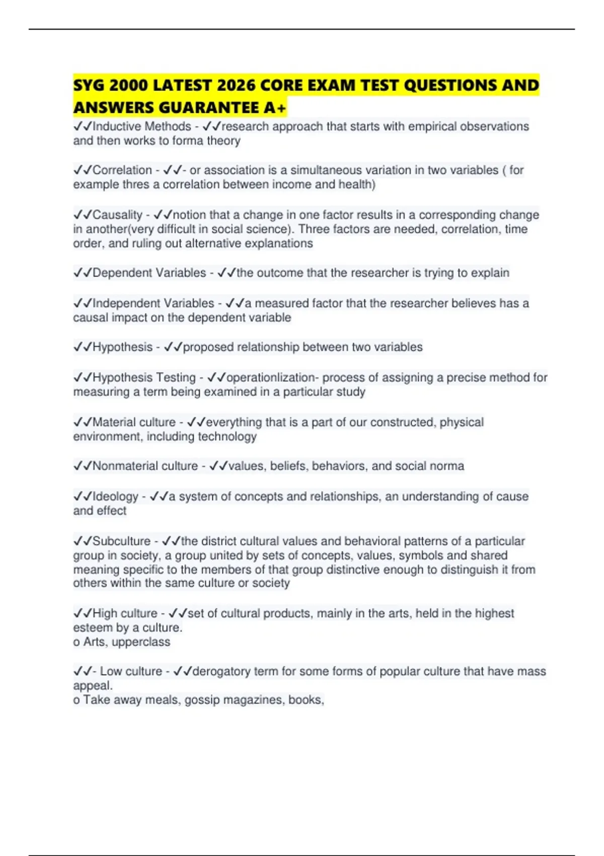 SYG 2000 LATEST 2026 CORE EXAM TEST QUESTIONS AND ANSWERS GUARANTEE A+