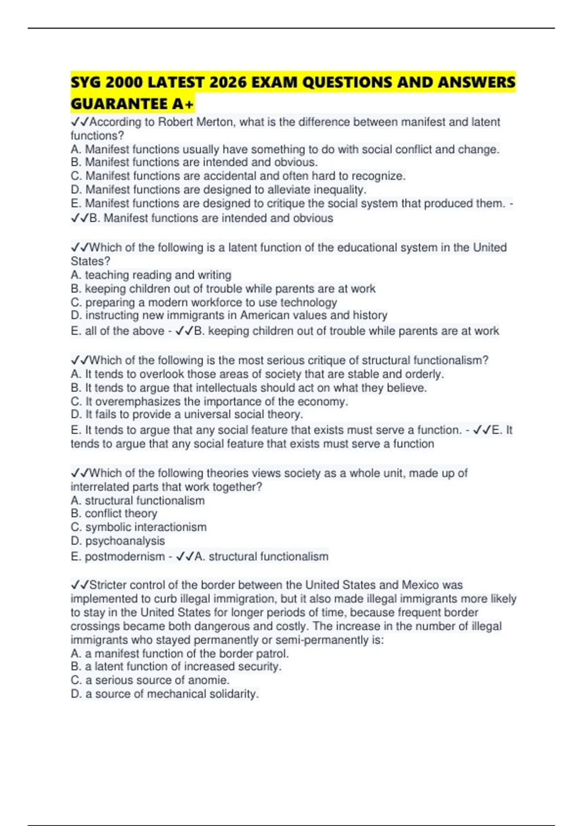 SYG 2000 LATEST 2026 EXAM QUESTIONS AND ANSWERS GUARANTEE A+