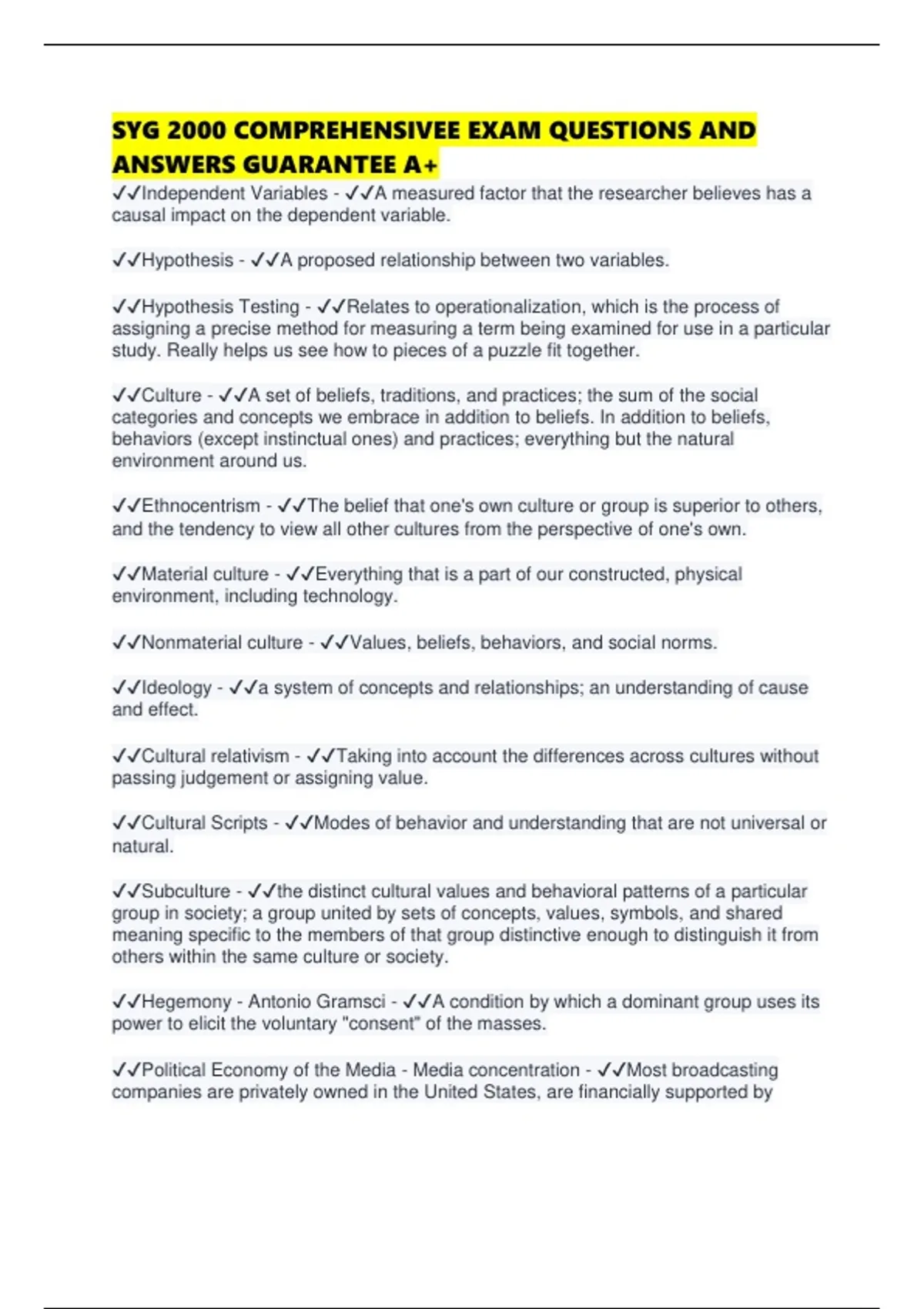 SYG 2000 COMPREHENSIVEE EXAM QUESTIONS AND ANSWERS GUARANTEE A+