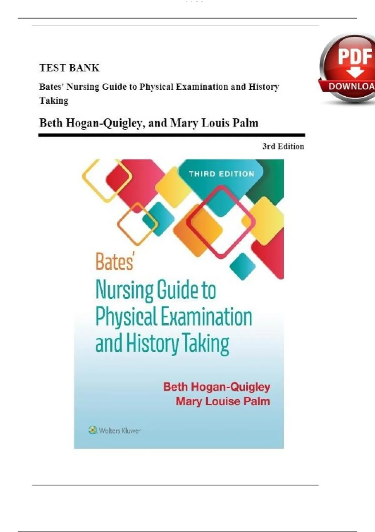 Test Bank for Bates' Nursing Guide to Physical Examination and History Taking 3rd third Edition Hogan-Quigley Palm