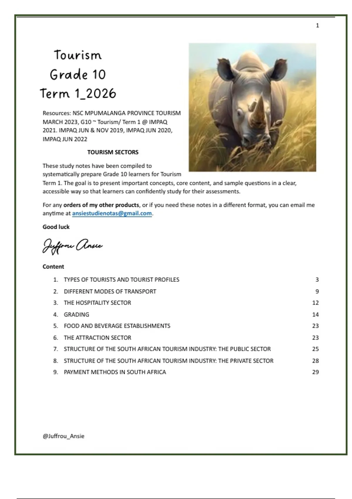Resources: NSC MPUMALANGA PROVINCE TOURISM