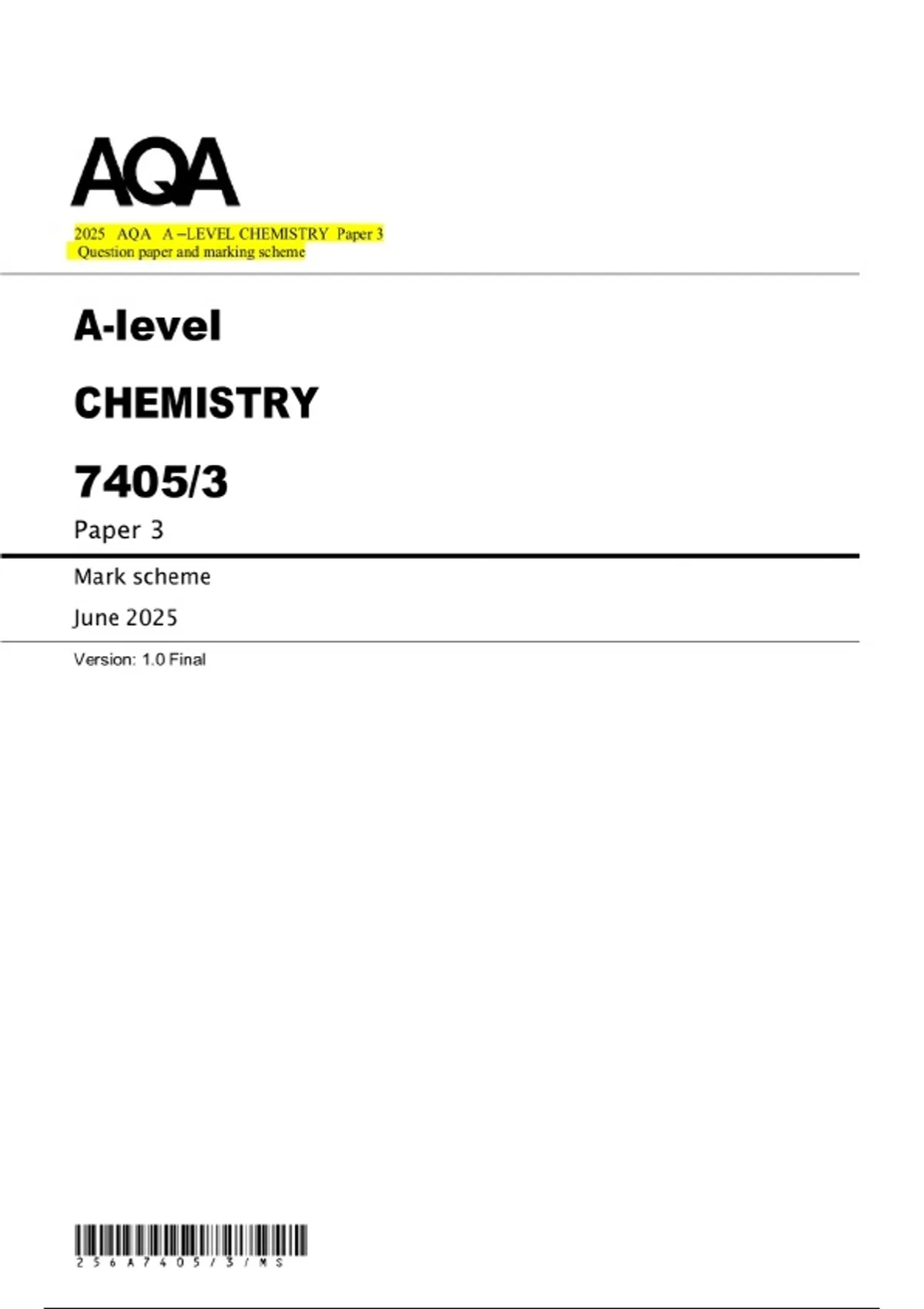 2025 OCR A Level Biology B (Advancing Biology) H422/01 Fundamentals of biology Combined Exam question paper and answer marking scheme