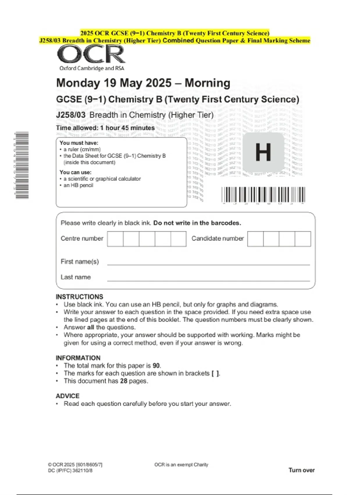 2025 OCR A Level Business H431/03 The global business environment Combined Exam question paper and answer marking scheme