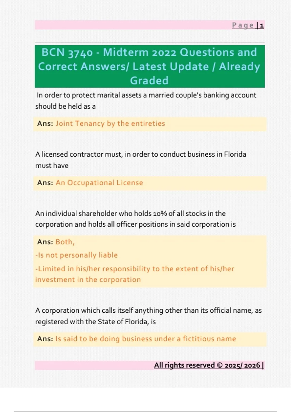 Correct Answers/ Latest Update / Already