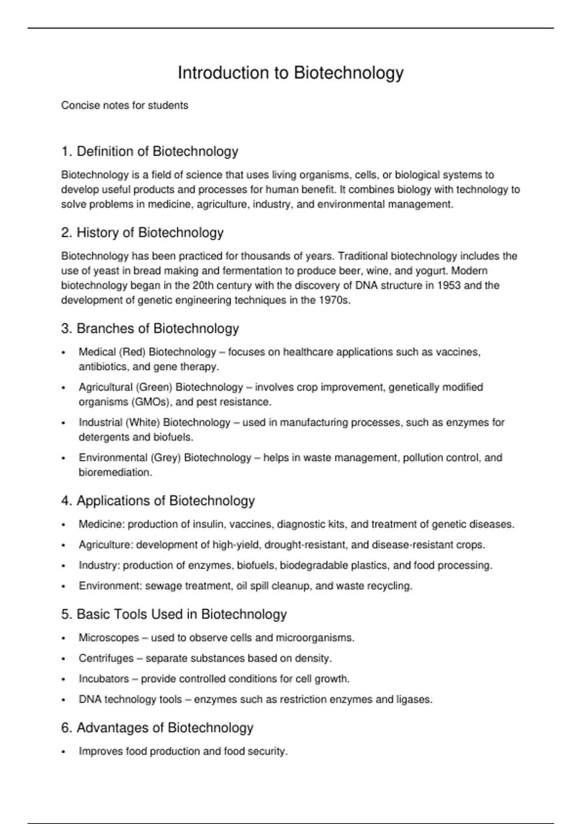 6. Advantages of Biotechnology