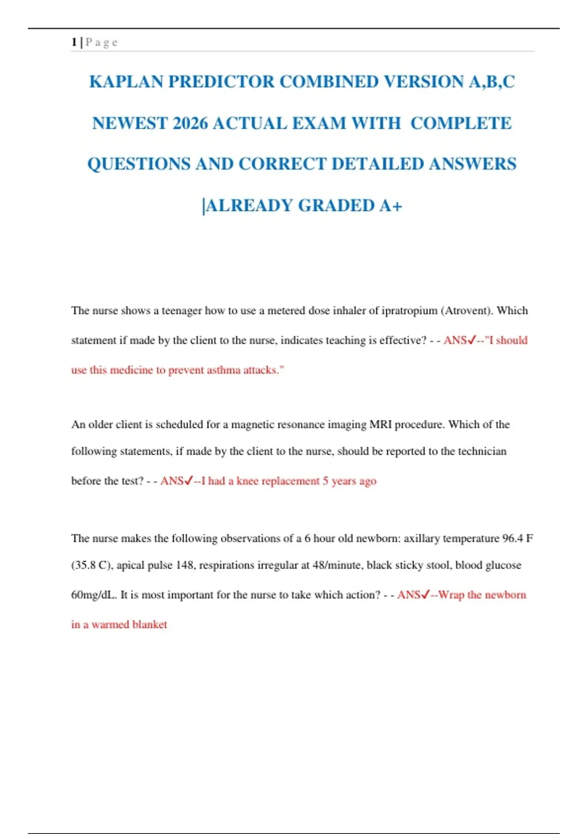 KAPLAN PREDICTOR COMBINED VERSION A,B,C