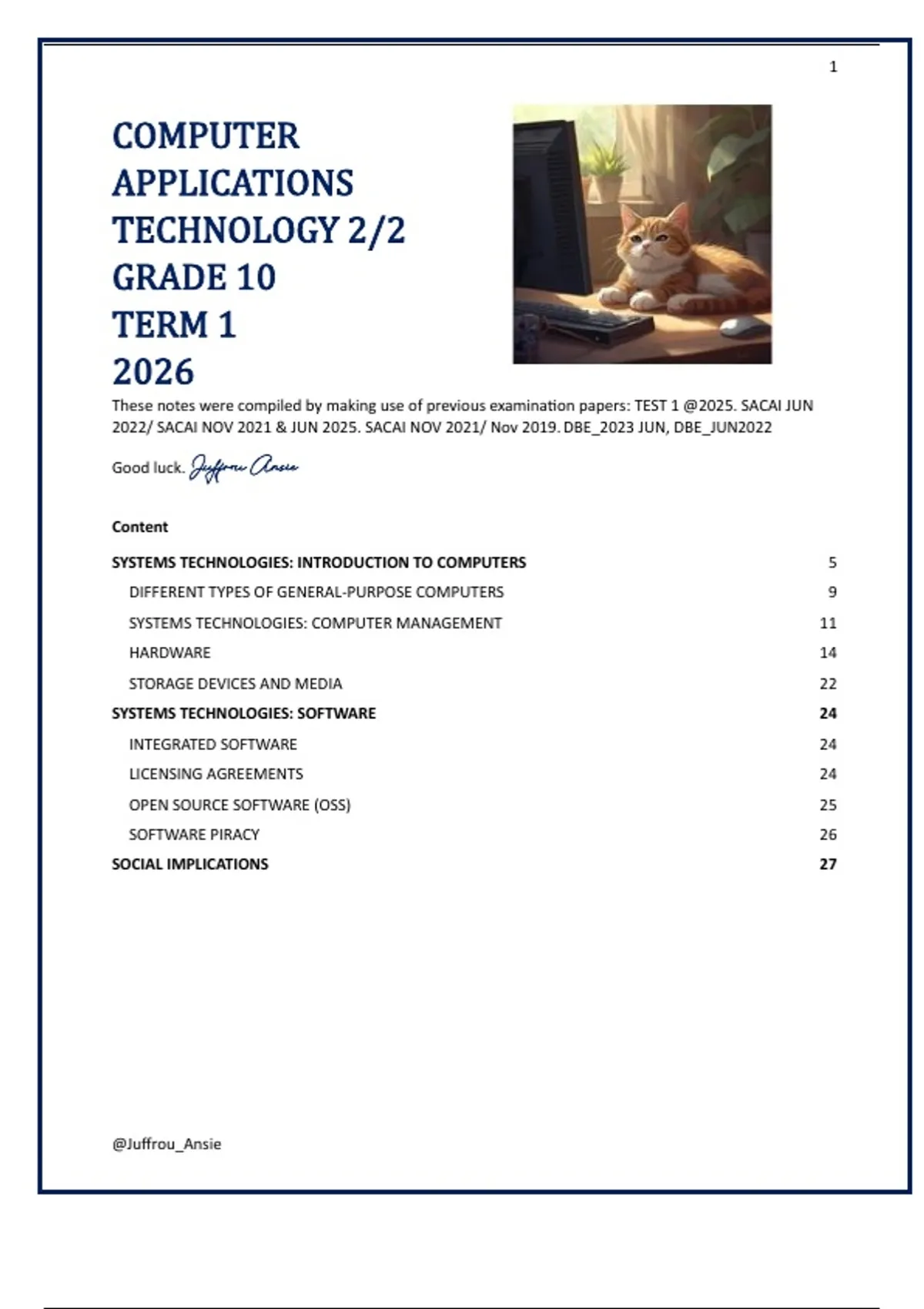 Summary Gr 10 Computer Applications Technology Term 1 2026 Summarised by Juffrou Ansie