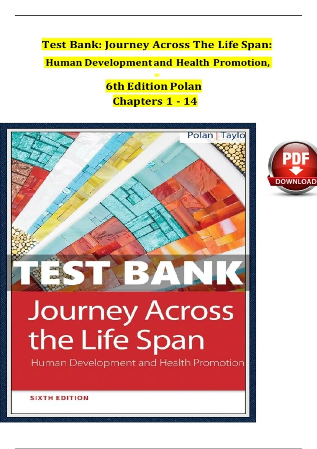 TEST BANK For Journey Across The Life Span: Human Development and Health Promotion, 6th Edition by Polan, Verified Chapters 1 - 14, Complete Newest Version