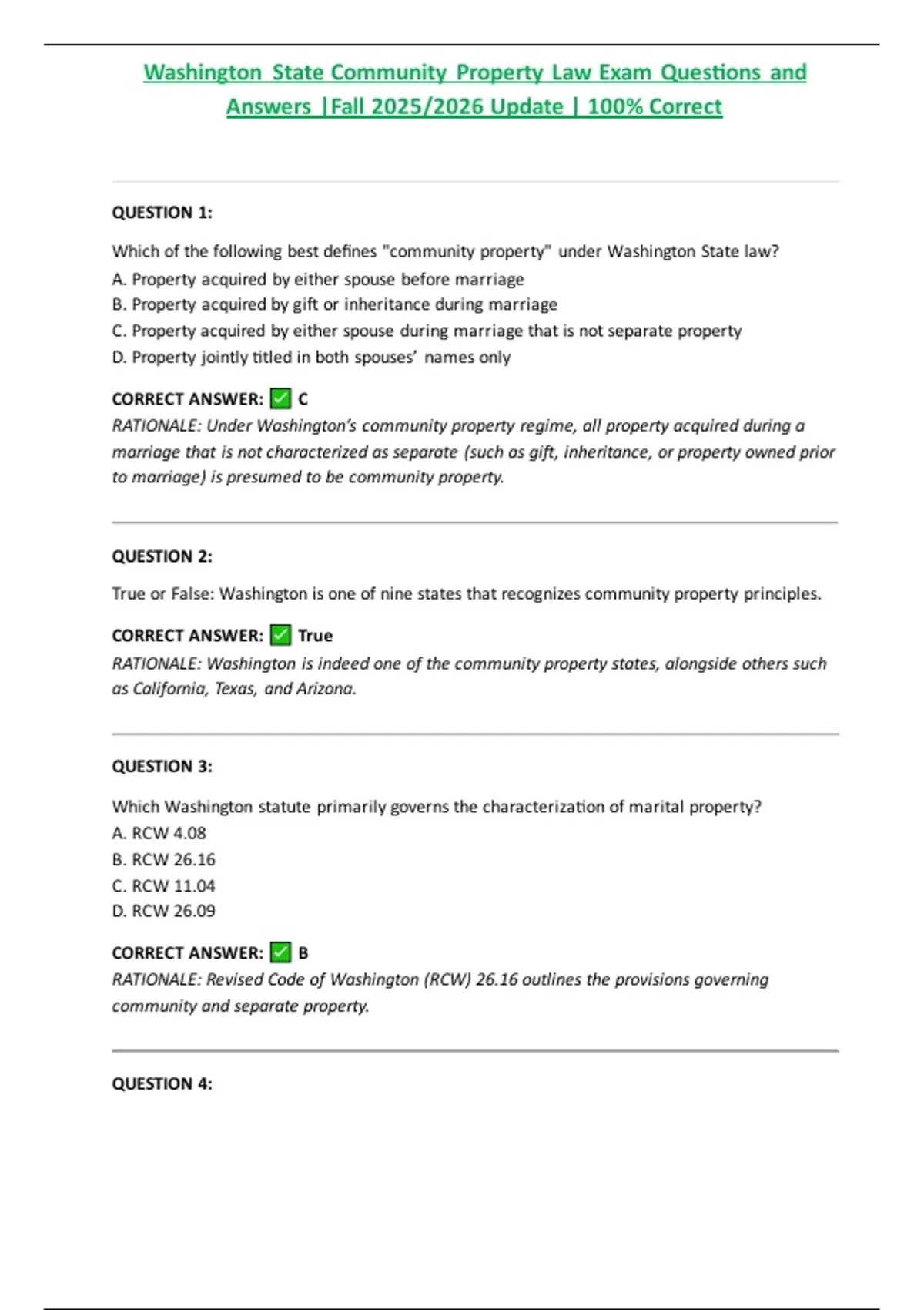 RATIONALE: Under Washington’s community property regime, all property acquired during a