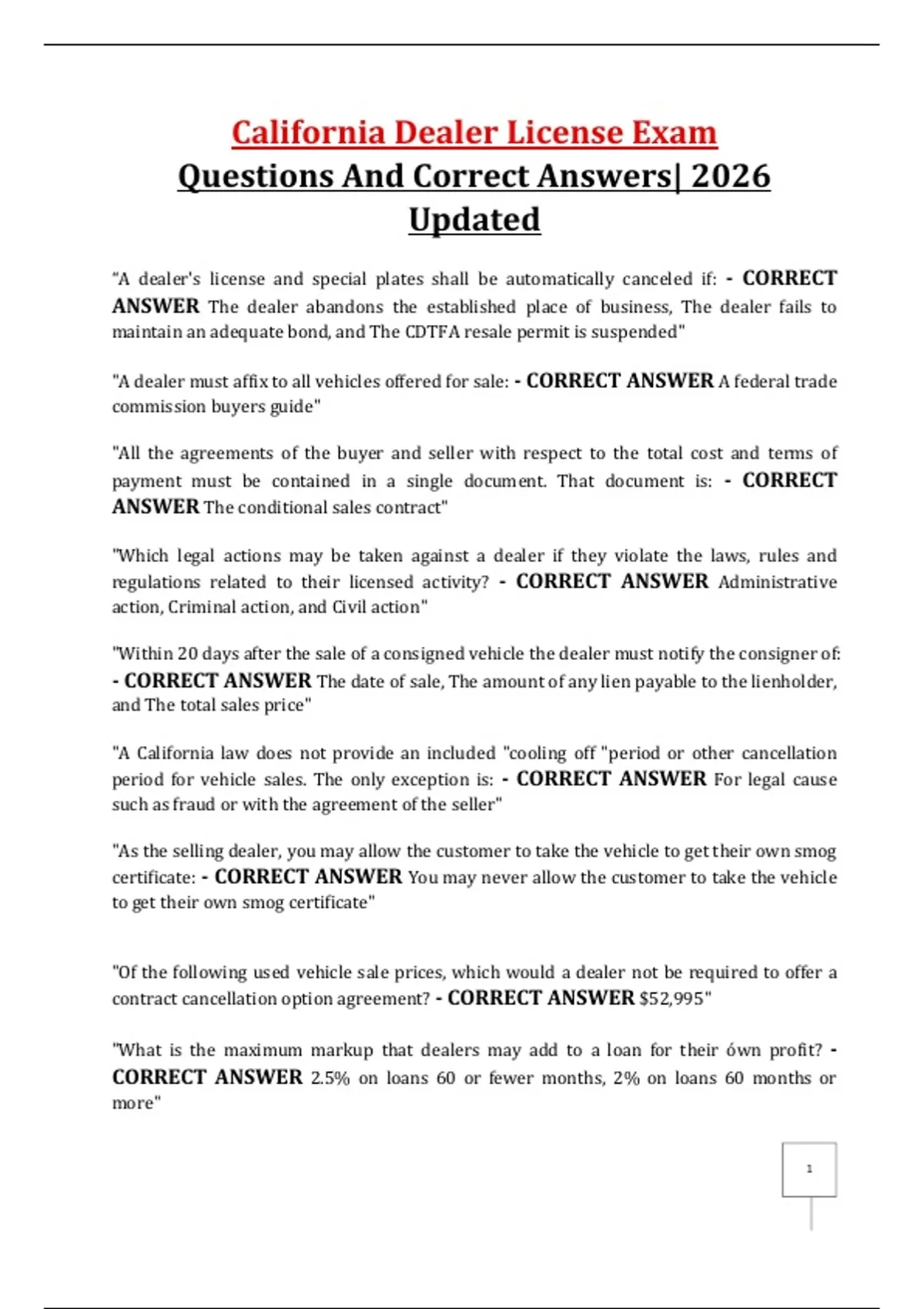 "What is the DMV dealer test fee? - CORRECT ANSWER $16"