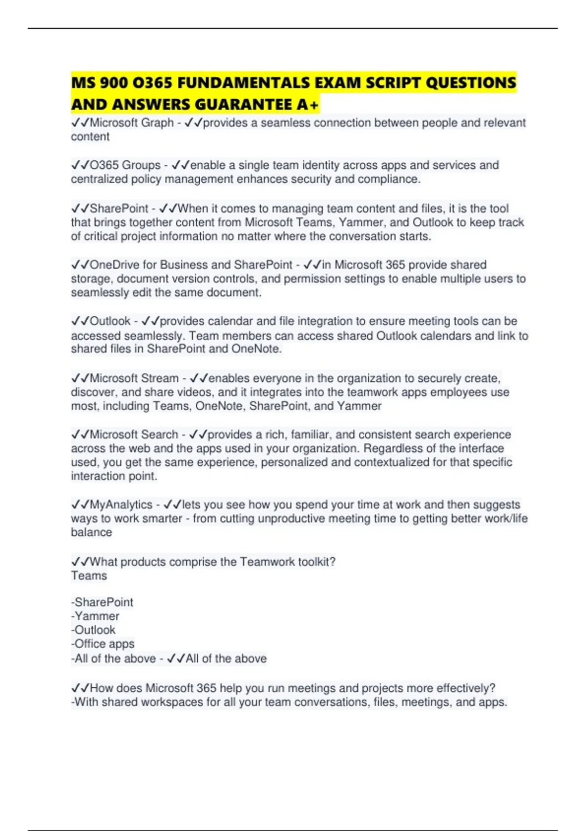 MS 900 O365 FUNDAMENTALS EXAM SCRIPT QUESTIONS AND ANSWERS GUARANTEE A+