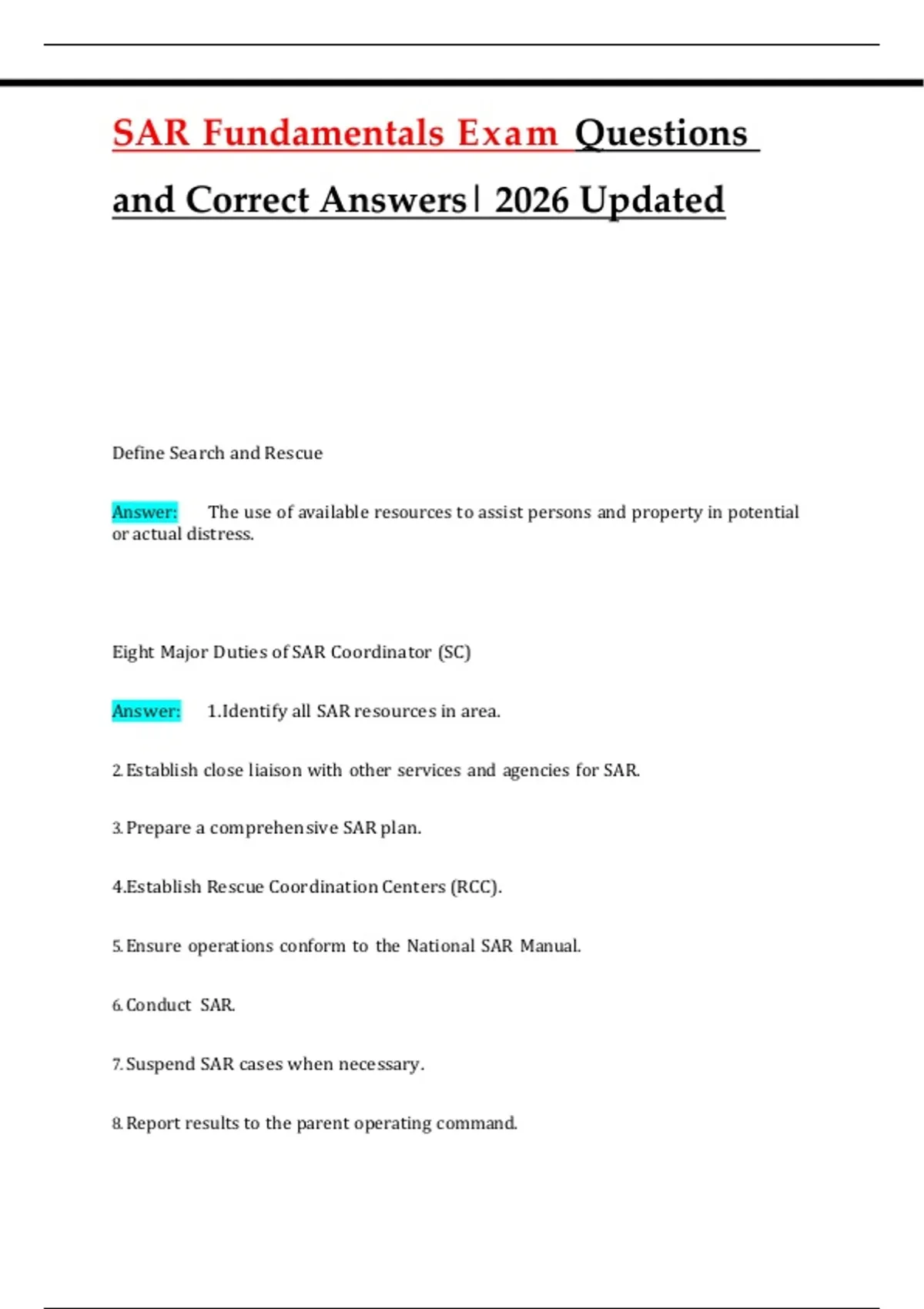 Eight Major Duties of SAR Coordinator (SC)