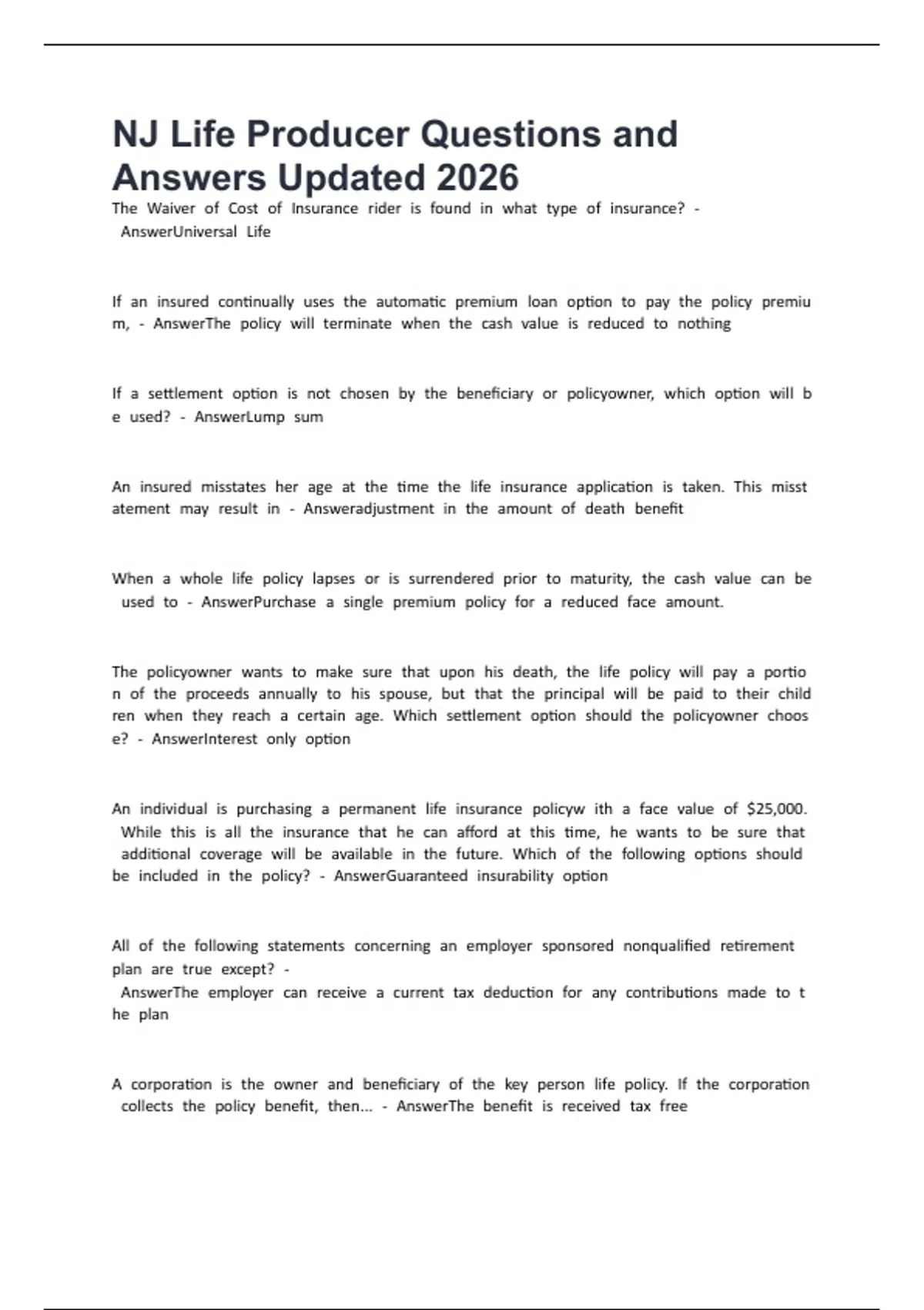 nj life producer latest 2026 | 2027 package deal Questions and Answers All Verified