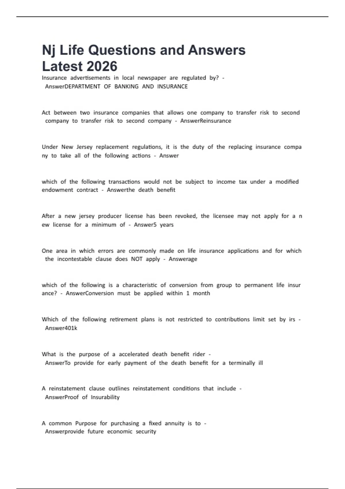 Nj Life Questions and Answers