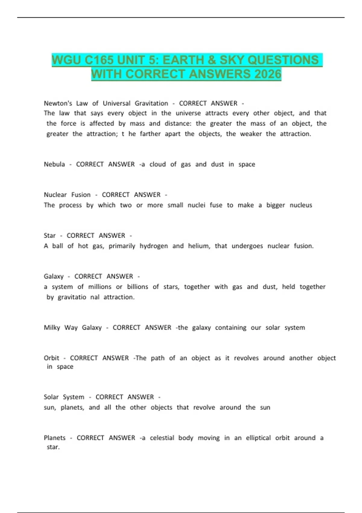 WGU C165 UNIT 5: EARTH & SKY QUESTIONS