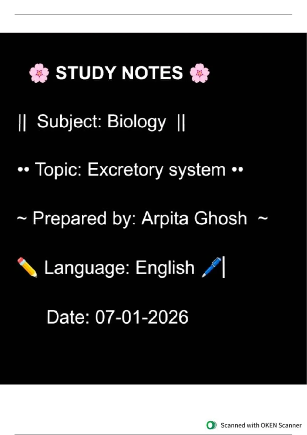 These notes cover the complete chapter of the Excretory System for Class 12 Biology. It includes clear handwritten diagrams, definitions, structure and functions of kidney and nephron, and important exam points. Very useful for school exams, board preparation, and quick revision.