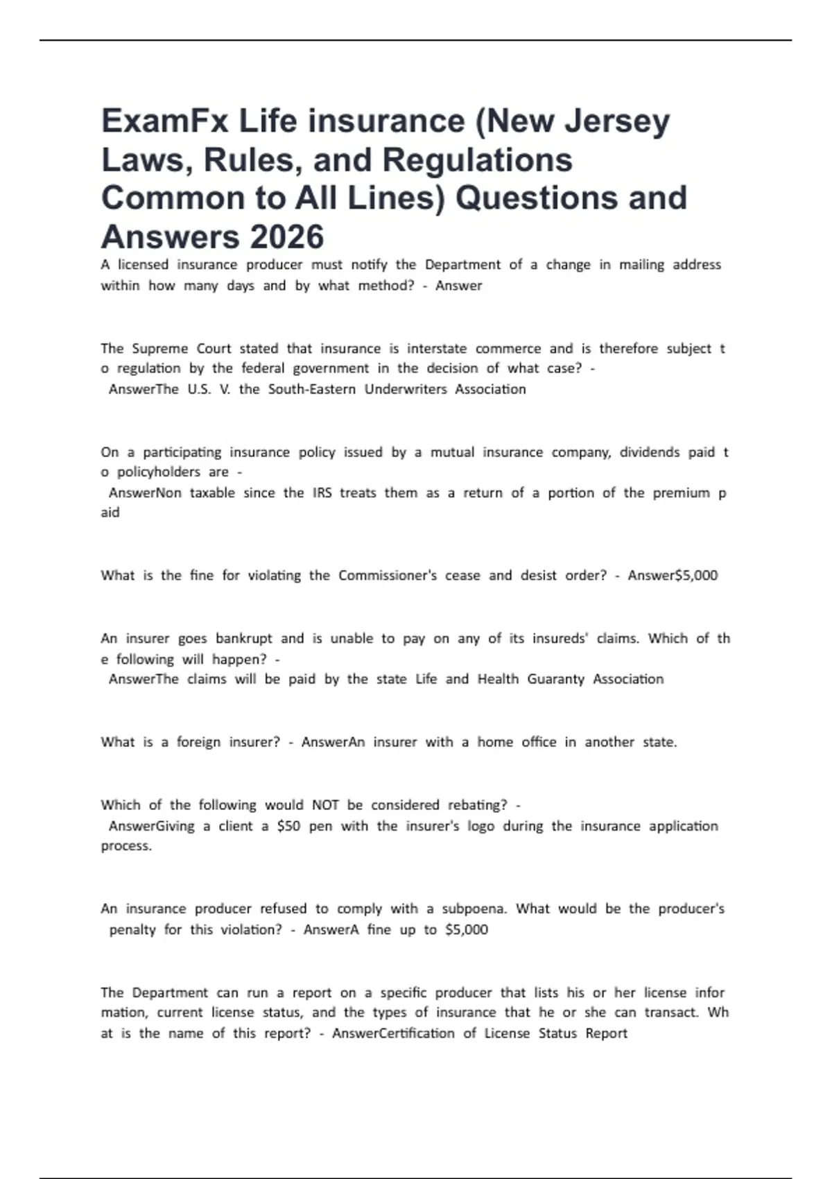 ExamFx Life insurance (New Jersey