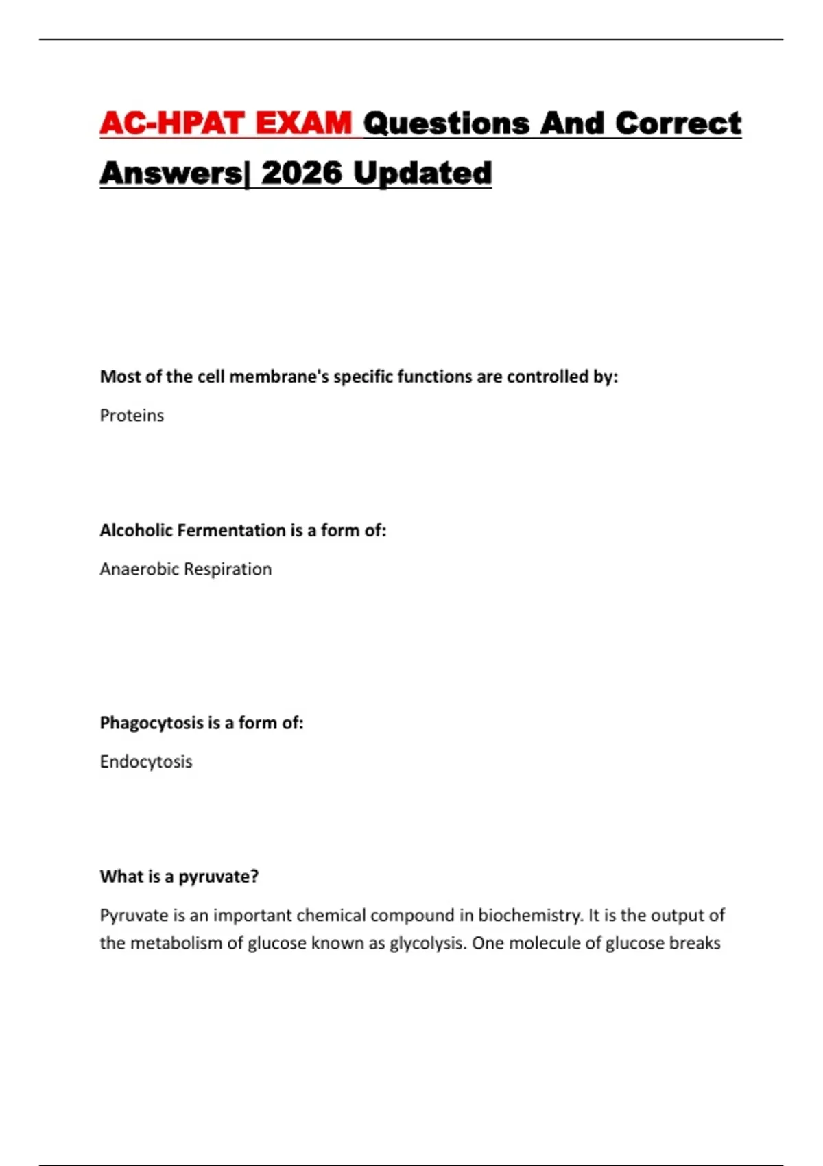 AC-HPAT EXAM Questions And Correct Answers| 2026 Updated| Score 100%