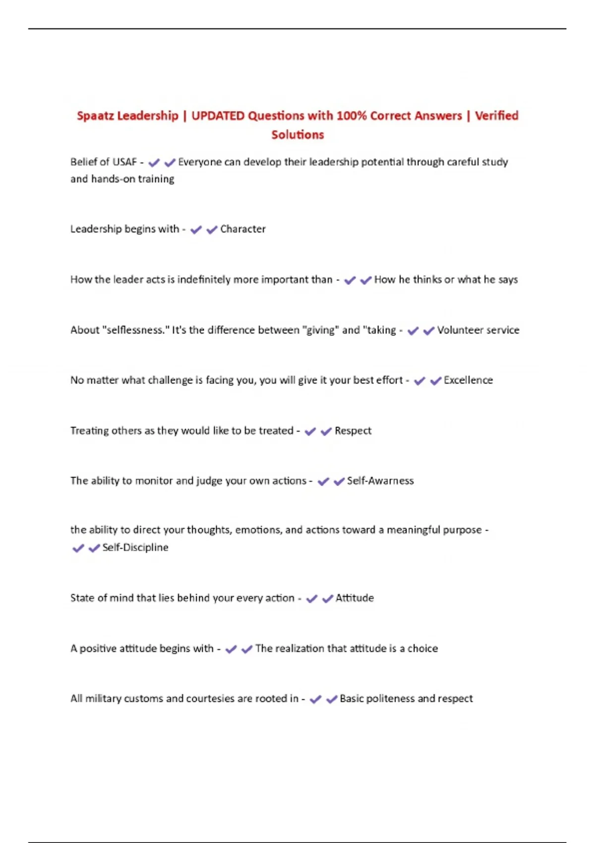 Spaatz Leadership | UPDATED Questions with 100% Correct Answers | Verified Solutions