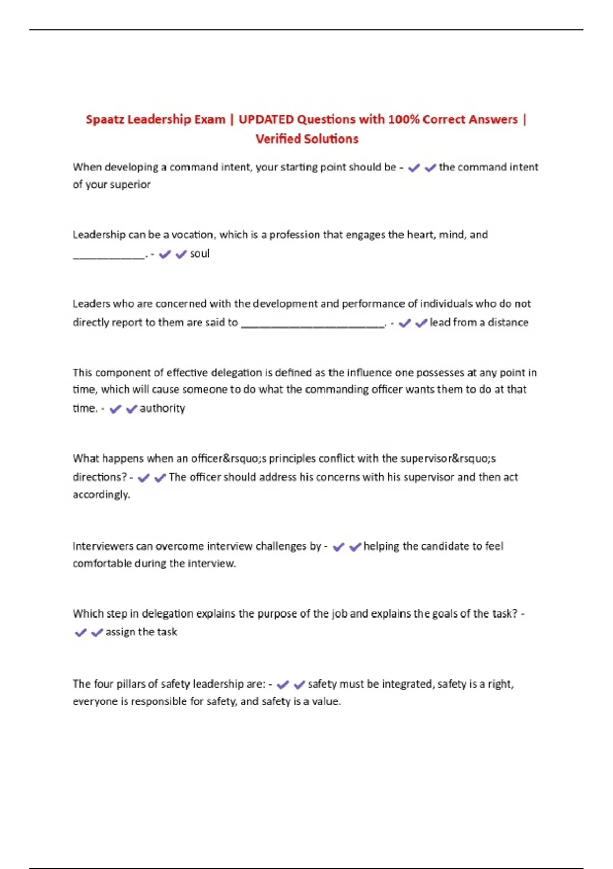 Spaatz Leadership Exam | UPDATED Questions with 100% Correct Answers | Verified Solutions