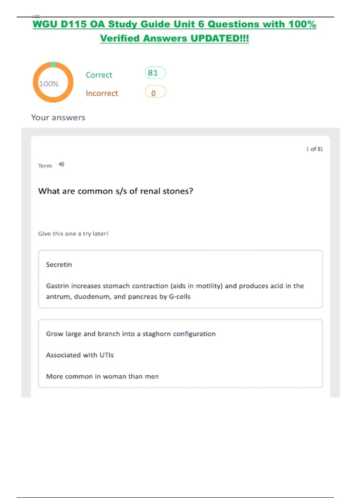 WGU D115 OA Study Guide Unit 6 Questions with 100% Verified Answers UPDATED!!!.