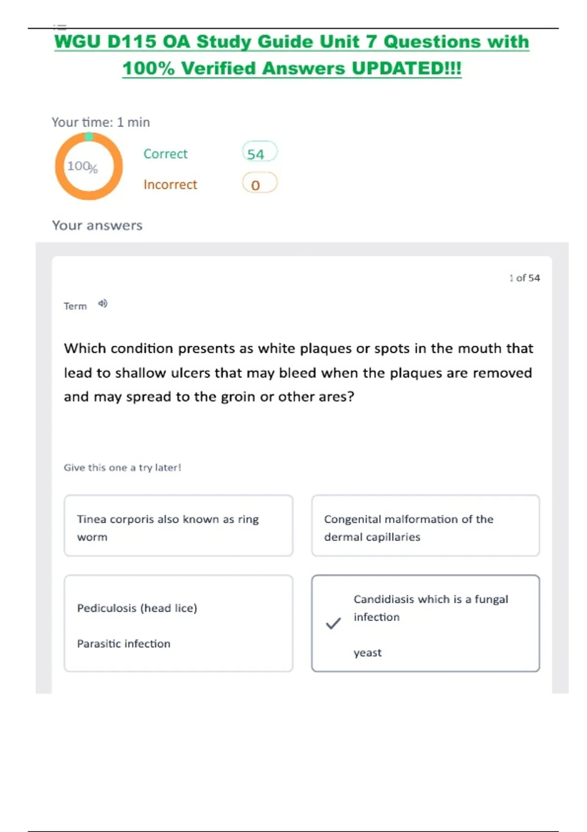 WGU D115 OA Study Guide Unit 7 Questions with 100% Verified Answers UPDATED!!!.