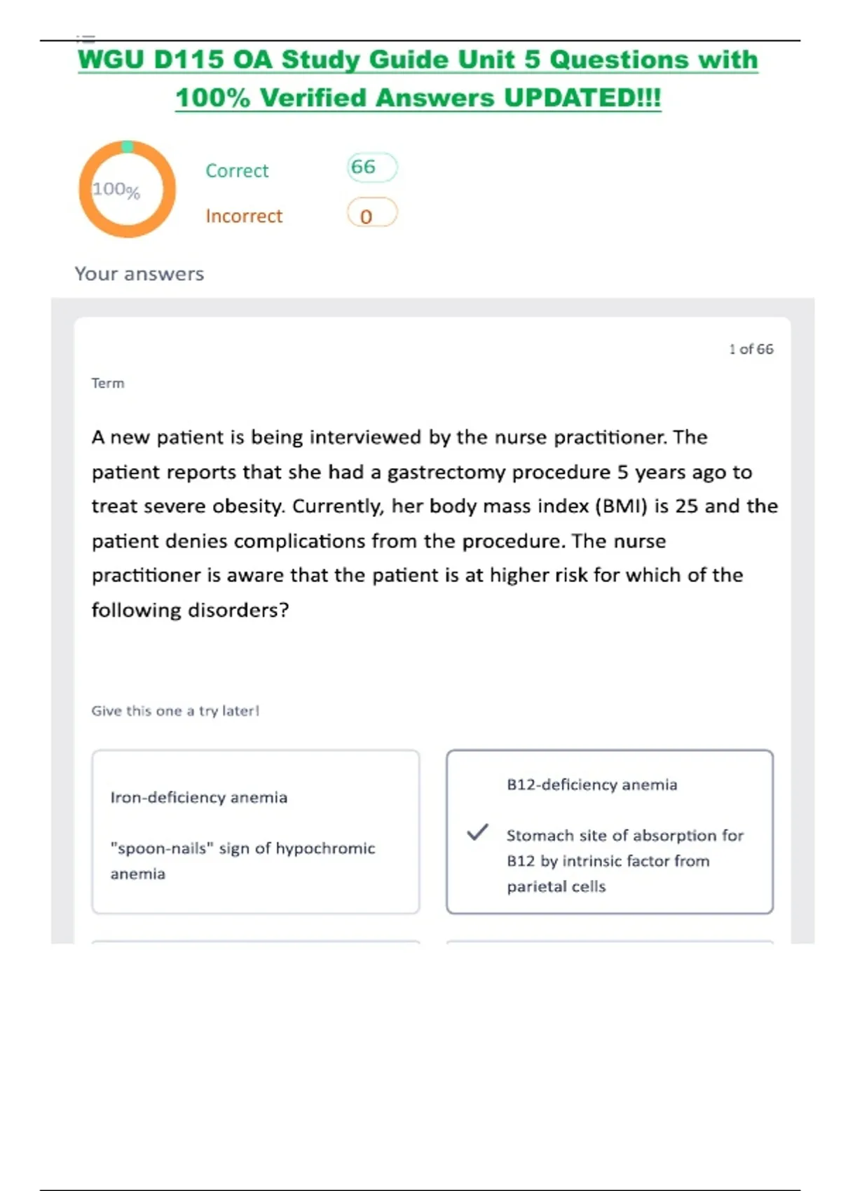 WGU D115 OA Study Guide Unit 5 Questions with 100% Verified Answers UPDATED!!!.