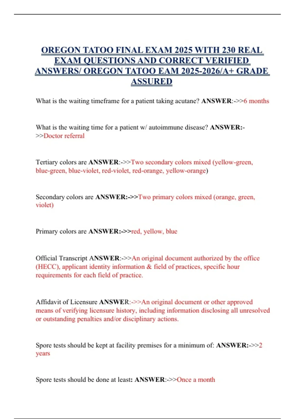 ANSWERS/ OREGON TATOO EAM 2025-2026/A+ GRADE