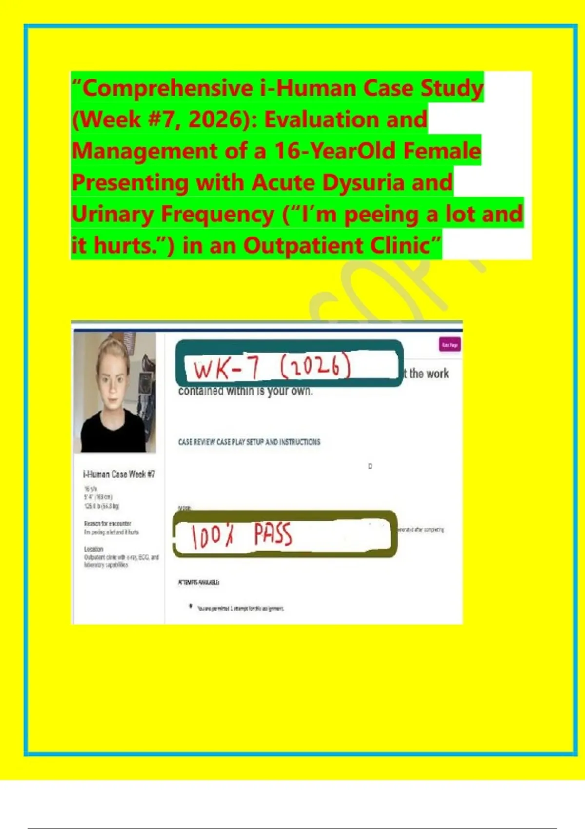 “Comprehensive i-Human Case Study (Week #7, 2026): Evaluation and Management of a 16-YearOld Female Presenting with Acute Dysuria and Urinary Frequency (“I’m peeing a lot and it hurts.”) in an Outpatient Clinic”